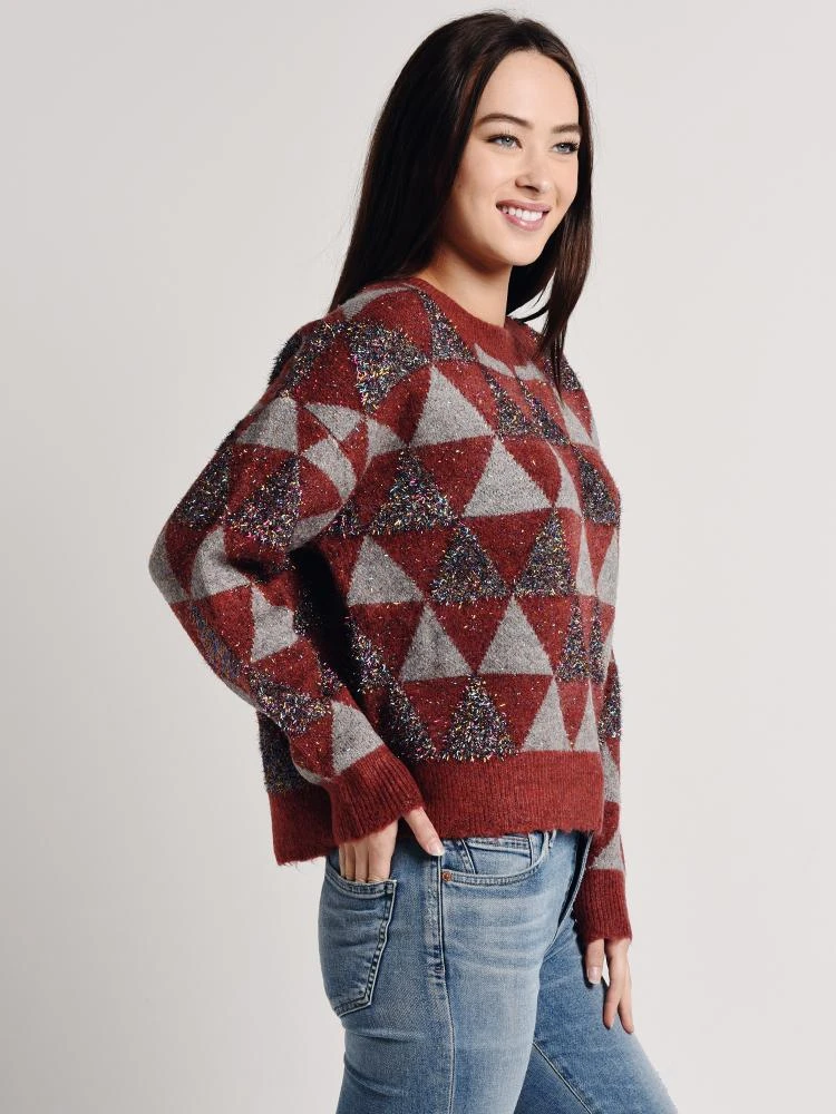 The Arkco Triangle Pattern Knit Sweater has a modern geometric print.