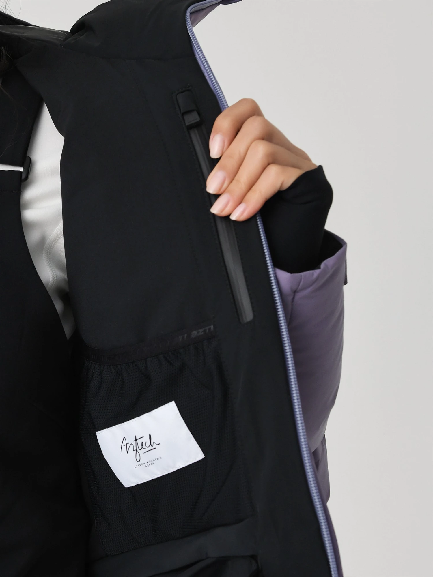 FEATURES:Adjustable HoodZip Chest PocketsRibbed Knit CuffsSki Pass PocketSide Zip PocketsSlight Cropped SilhouetteWater-Repellent FinishDown InsulationRelaxed FitModel is wearing size 40 jacket.Model’s Measurements: Height: 5’8″ | Bust: 32B | Waist: 25″ | Hips: 36.5″ | Dress Size: 2 (US)