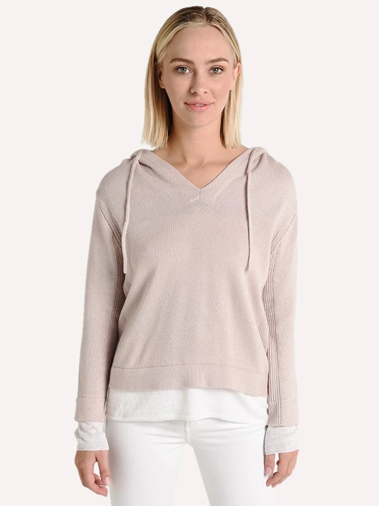 FEATURES:Fine Knit Cotton Cashmere Blend HoodieRelaxed FitDropped ShoulderV-NeckDrawstrings at HoodLayered Hem and CuffsContrast Ribbed Knit Sides and Under Sleeve72% Cotton, 13% Cashmere, 15% LinenStyled with Citizens of Humanity jeans style # 1664C-799 and Binge sandals Style # KAIPS. Model is wearing size Small hoodie and size 25 jeans.