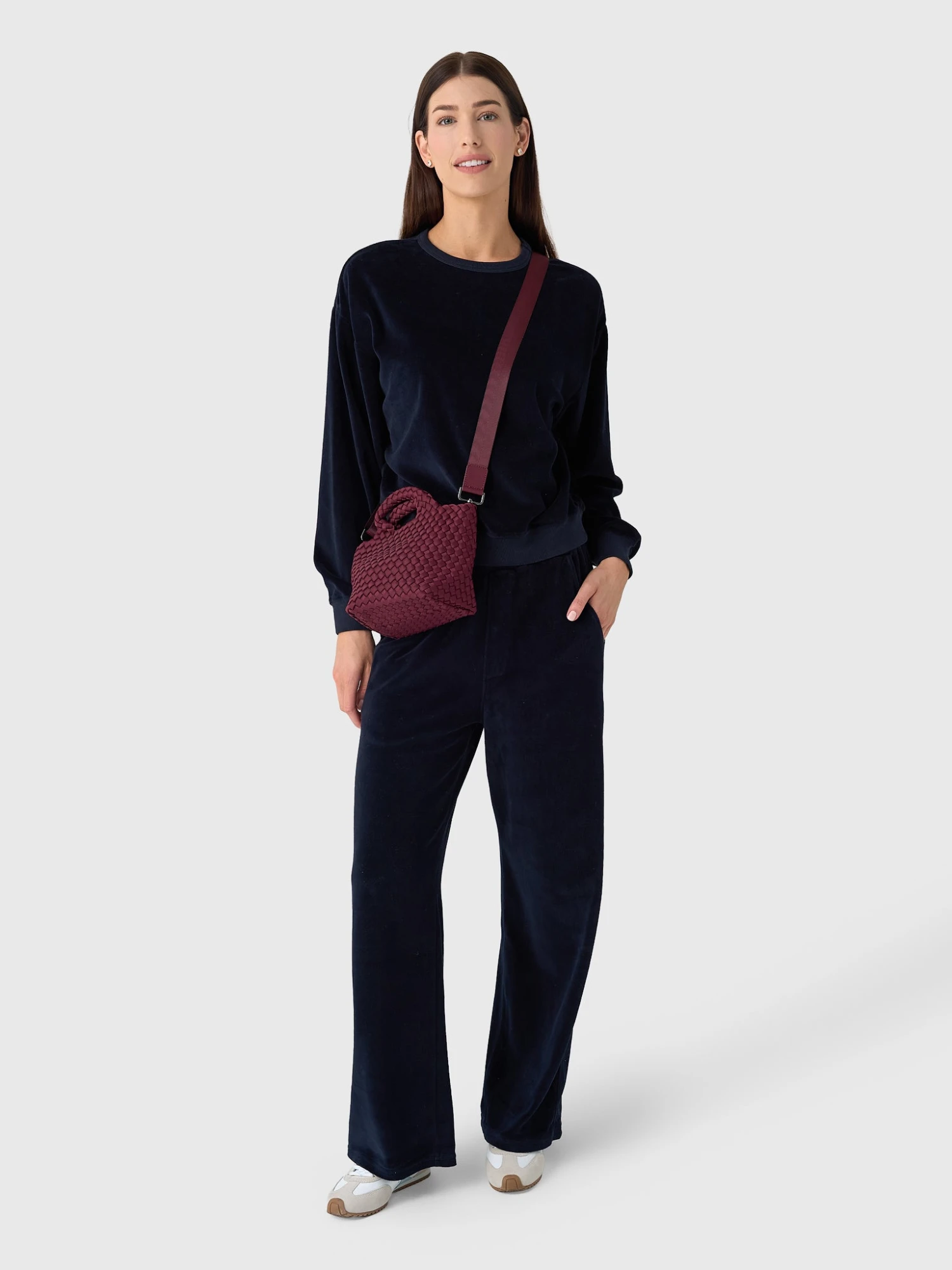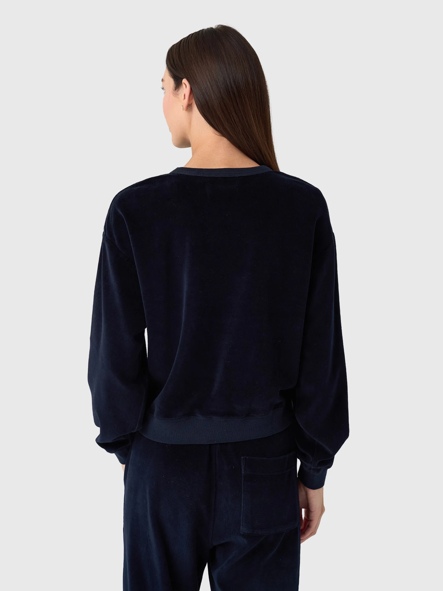 Plush and nostalgic, the Vintage Crewneck is crafted from ultra-soft velour with a subtle sheen. This long-sleeve silhouette nods to classic athletic wear, reimagined with a refined touch. It’s an easy layering piece with standout texture, perfect for wearing solo or styled under structured outerwear.