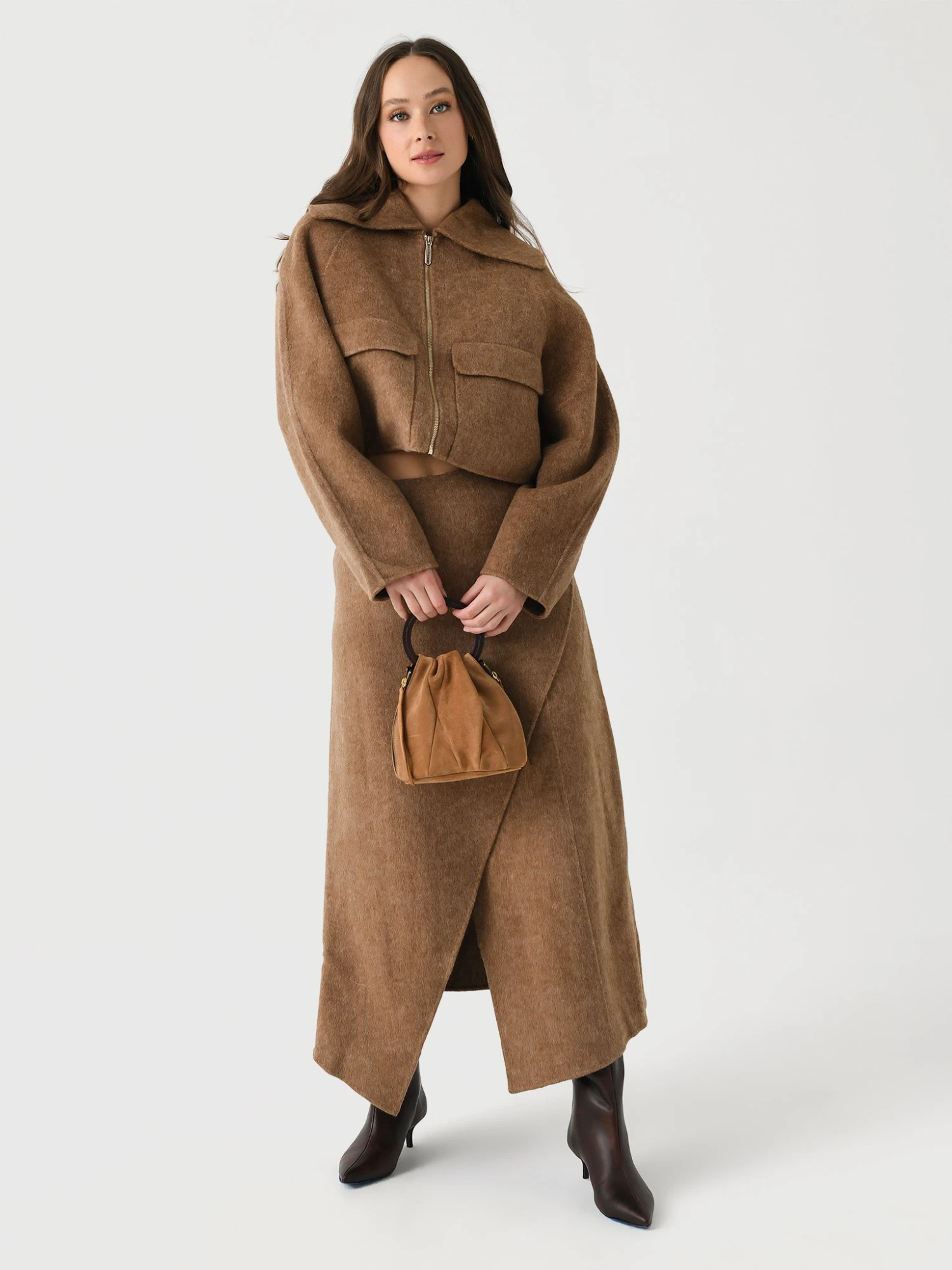 A slightly cropped, boxy jacket with a sculptural design made from an alpaca wool blend.