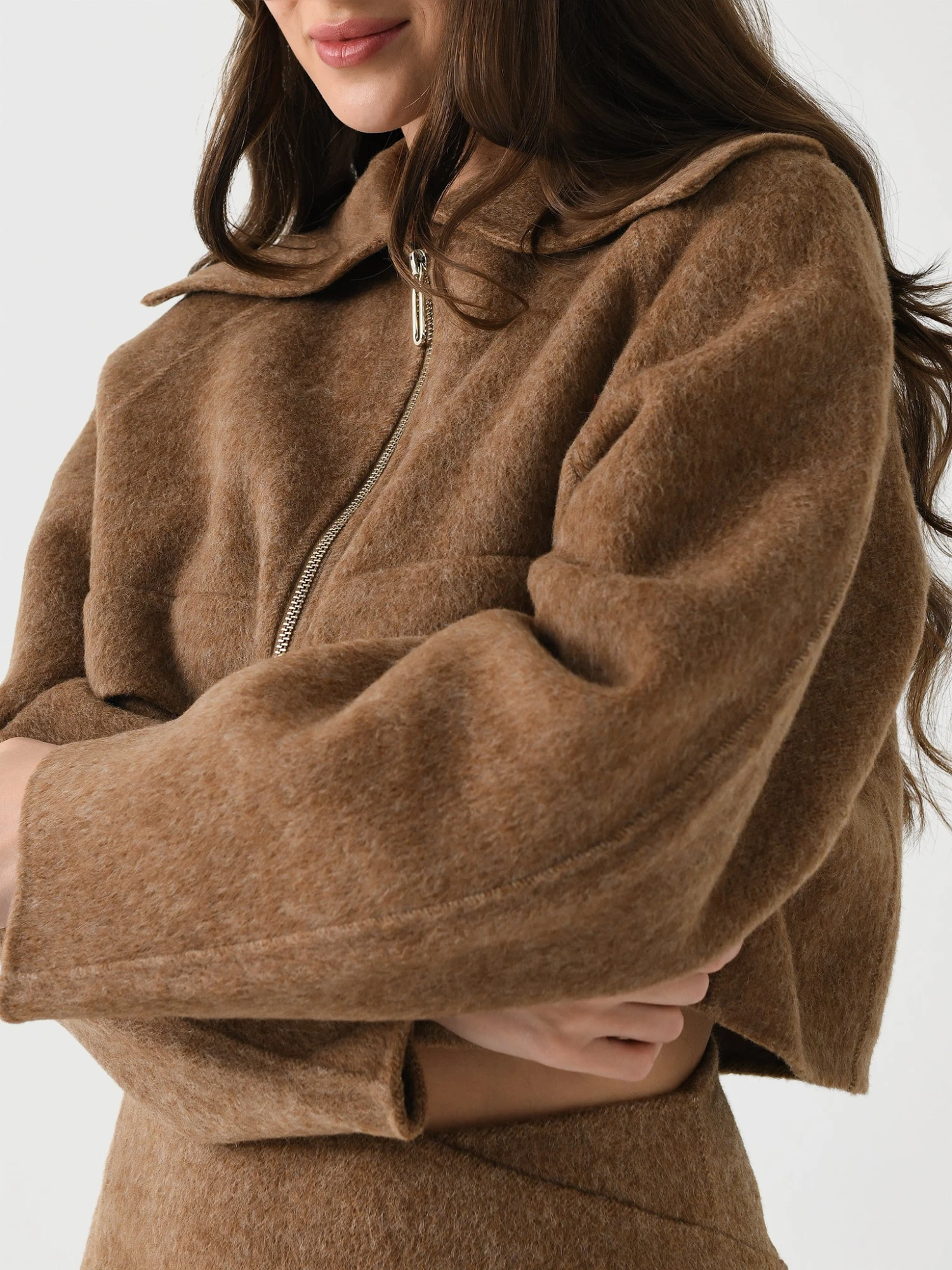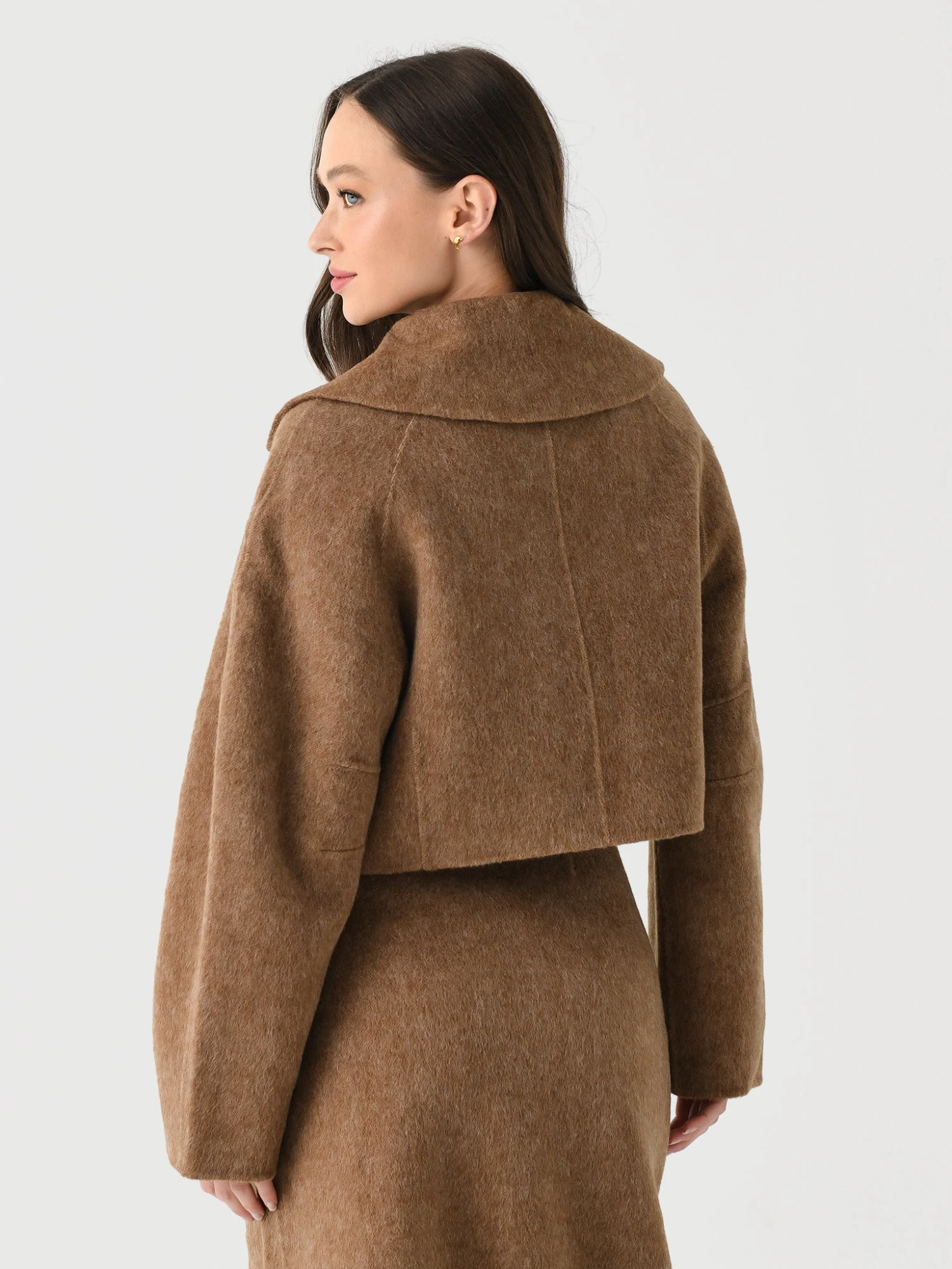 FEATURES:Large CollarCocoon SleevesFlap PocketsFull Zip ClosureCropped Silhouette90% Wool, 10% AlpacaClassic FitModel is wearing size Small jacket.Model’s Measurements: Height: 5’10.5″ | Bust: 32C/D | Waist: 26″ | Hips: 37″ | Dress Size: 4 (US)