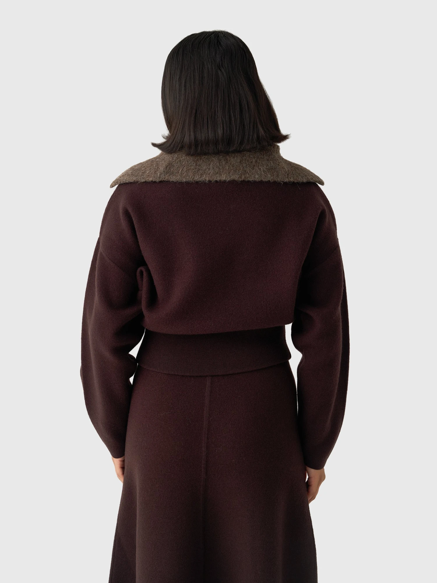 FEATURES:Large CollarDropped Shoulder2-Way Zip ClosureSide PocketsRibbed Hem100% Merino WoolRelaxed FitModel is wearing size Small jacket. Model’s Measurements: Height: 5’8″ | Bust: 32A | Waist: 28″ | Hips: 38″ | Dress Size: 4 (US)