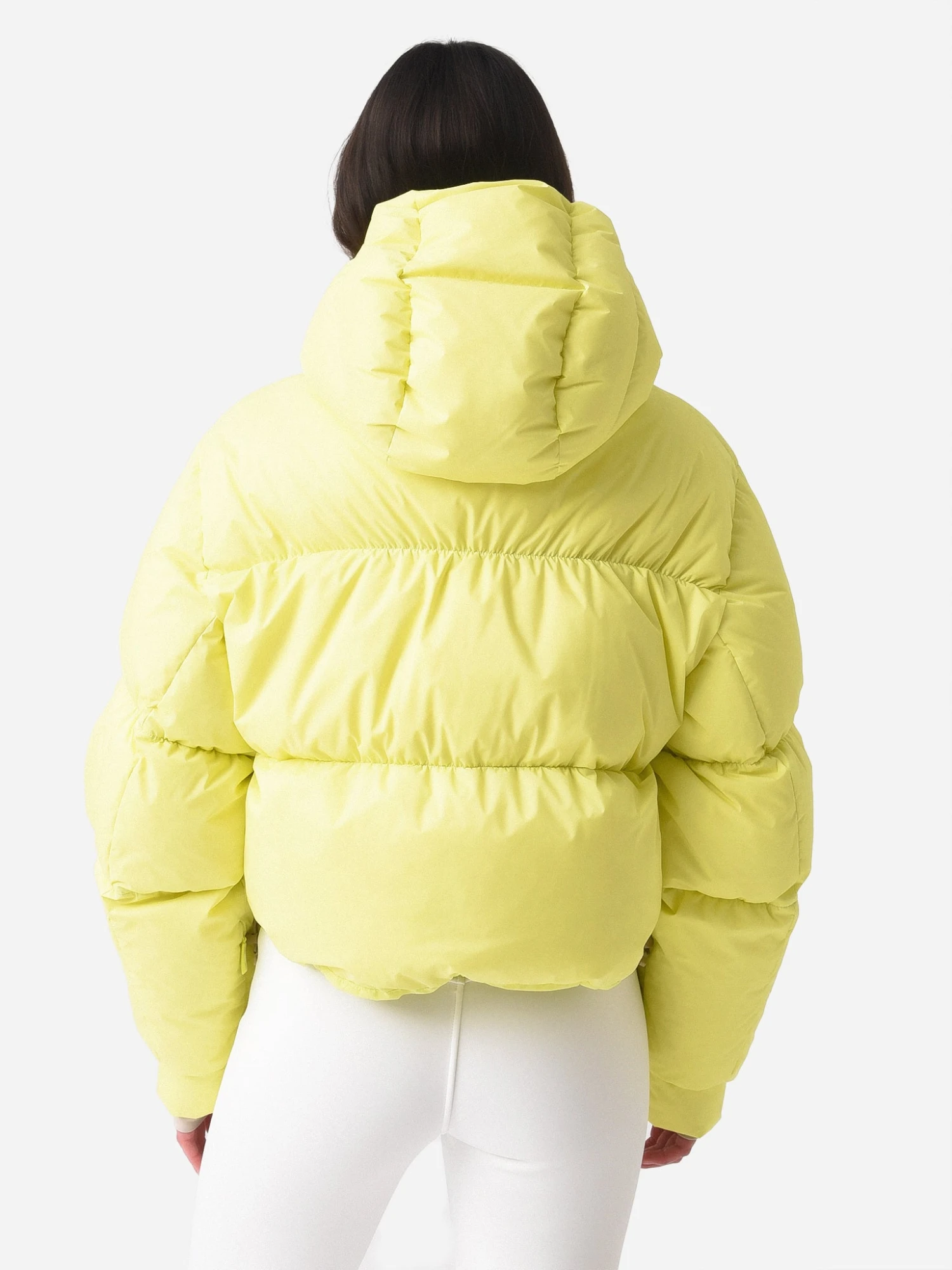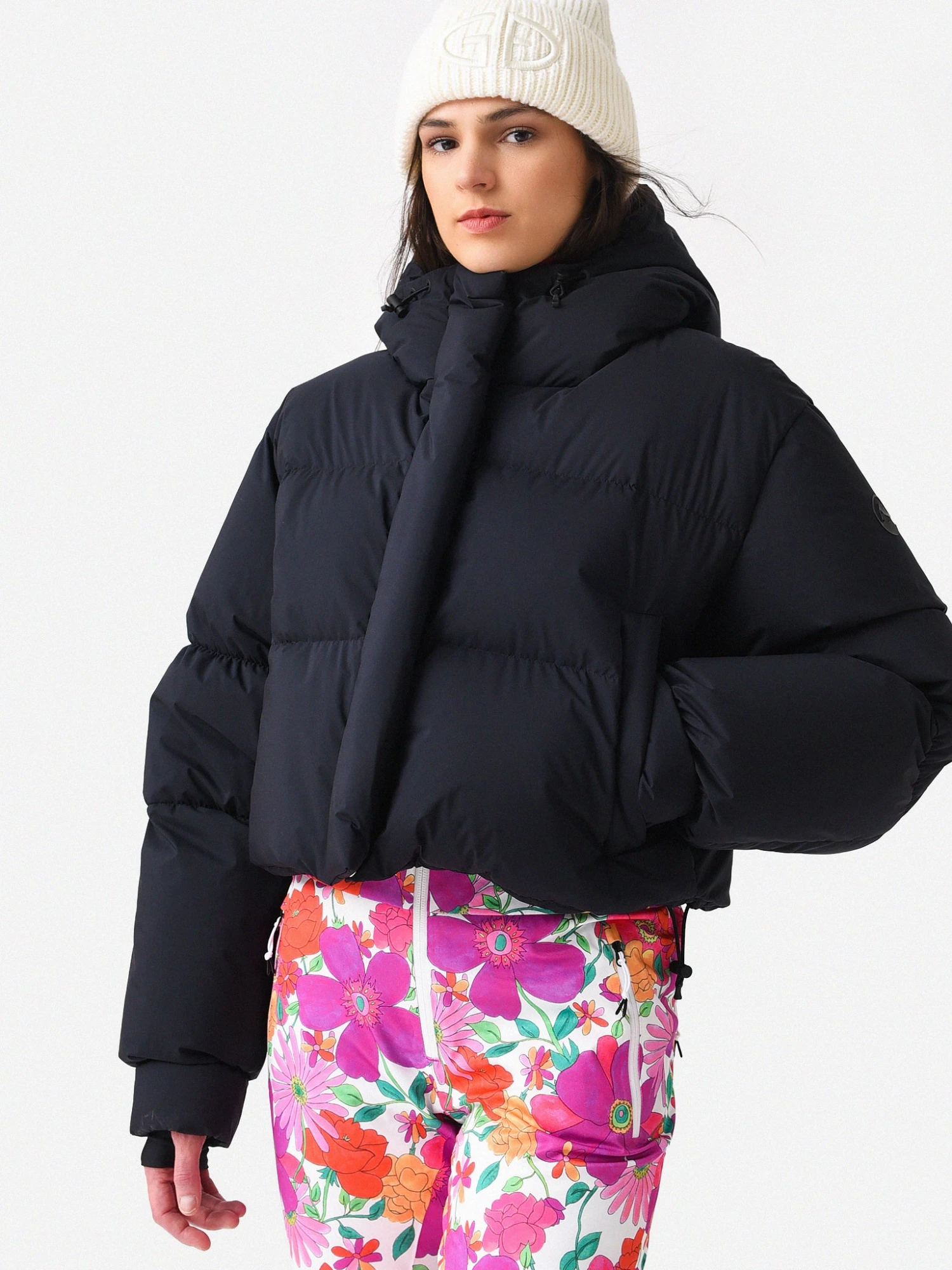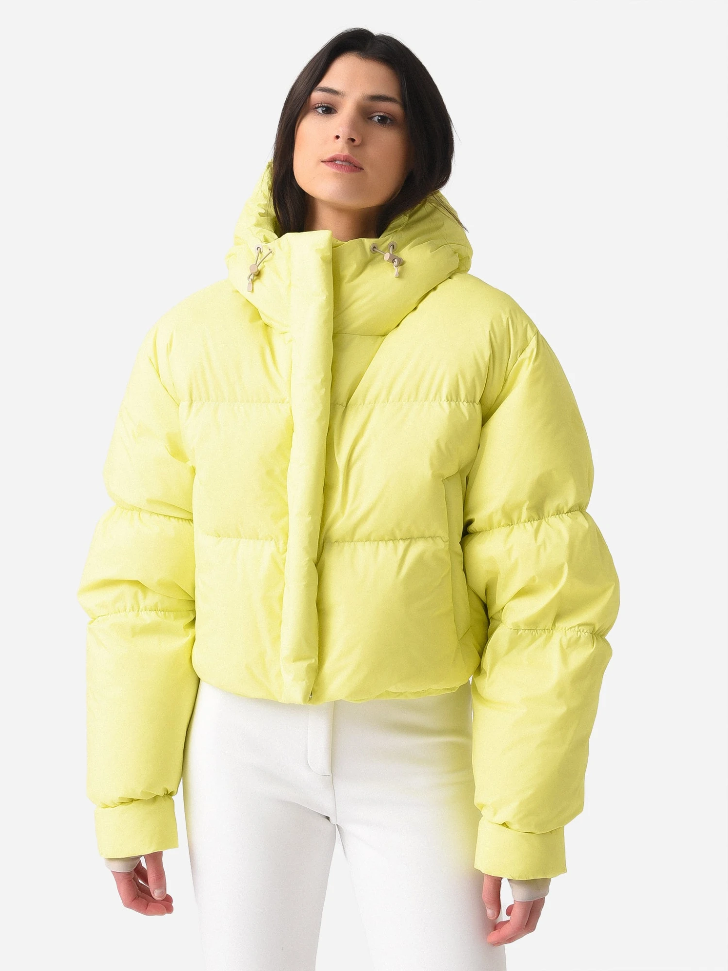 FEATURES:JacketHigh NecklineAttached Hood with DrawcordsLong Sleeve with Velcro CuffsSide PocketsZip Closure with Velcro PlacketInterior Snap HemQuilted FabricationShell: Polyamide | Lining: Recycled Polyester | Fill: Down/FeatherClassic FitModel is wearing size Small jacket.Model’s Measurements: Height: 5’9.5″ | Bust: 34A | Waist: 26.5″ | Hips: 37″ | Dress Size: 2-4 (US)