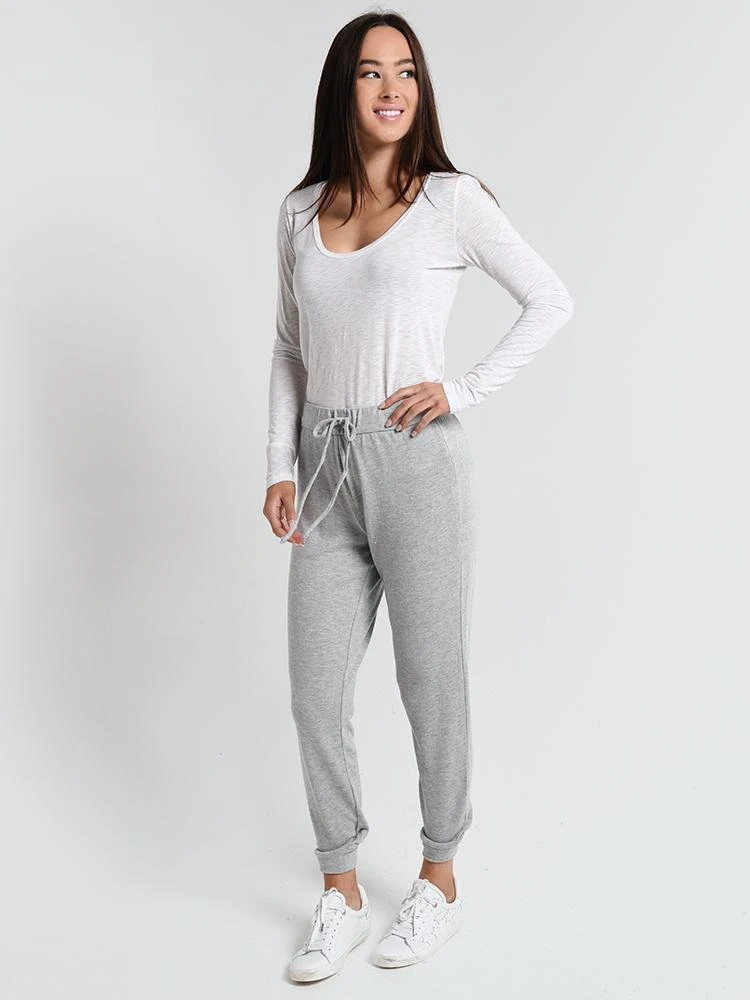 FEATURES:Drawstring waistband.Relaxed fit through tapered legs.Banded cuffs.Ankle length.Pull-on style.Polyester/rayon/spandex.Imported.Model is wearing size small pant.