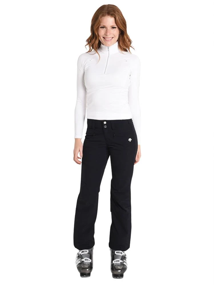 FEATURES:Front snap and zip closureAdjustable waist Belt loopsZippered front pockets Bottom leg zippers 4-way stretch 20K/20K40g of 3M Thinsulate Motion 3D fit Slim fit 85% nylon, 15% spandex Imported Styled with Descente baselayer Style # D8-0631W. Model is wearing size 2 pant and baselayer.