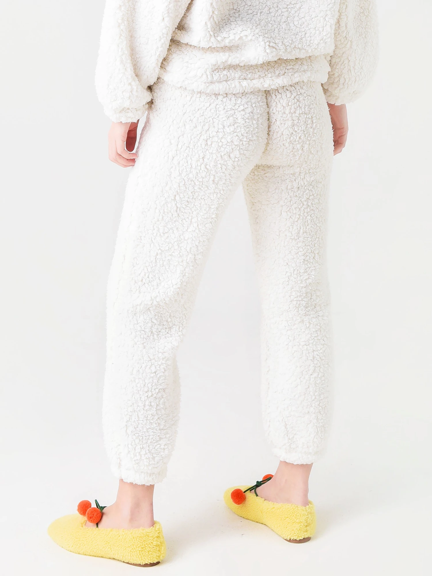 FEATURES:PantContrast Waistband w/ DrawstringCropped LengthBanded CuffsPlush Sherpa Fabrication100% PolyesterRelaxed FitModel is wearing size Small pant.Model’s Measurements: Height: 5’9.5″ | Bust: 32C | Waist: 26″ | Hips: 35.5″ | Dress: 2 (US)