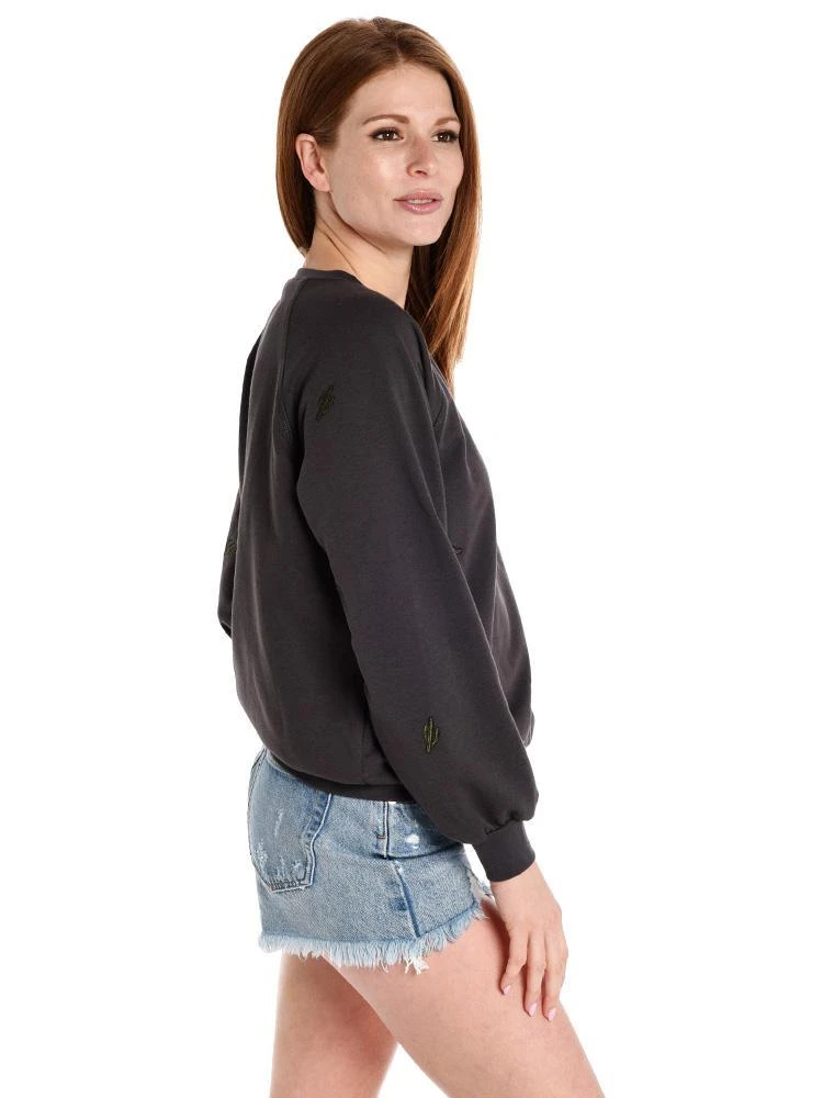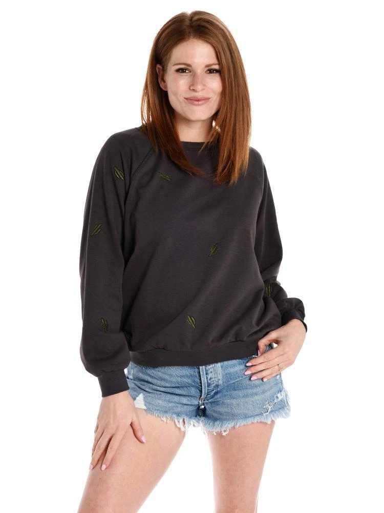 FEATURES:CrewneckEmbroidered cactus Long sleeve 100% Cotton ImportedStyled with AGOLDE Jean Style # A018C-812. Model is wearing size small top and 26 jean.
