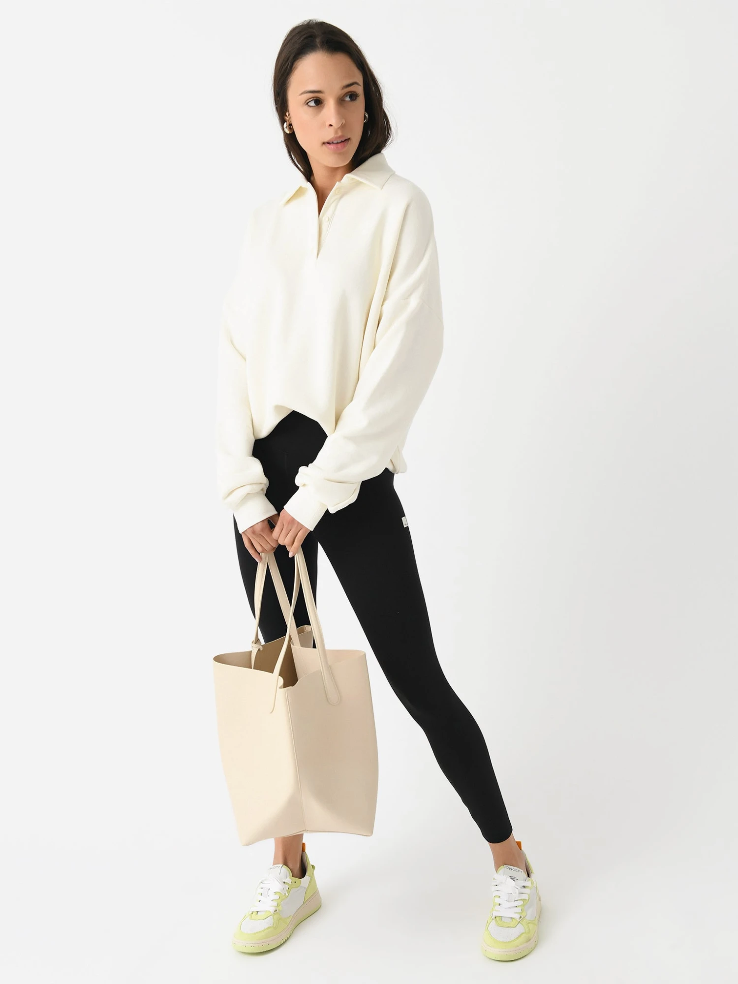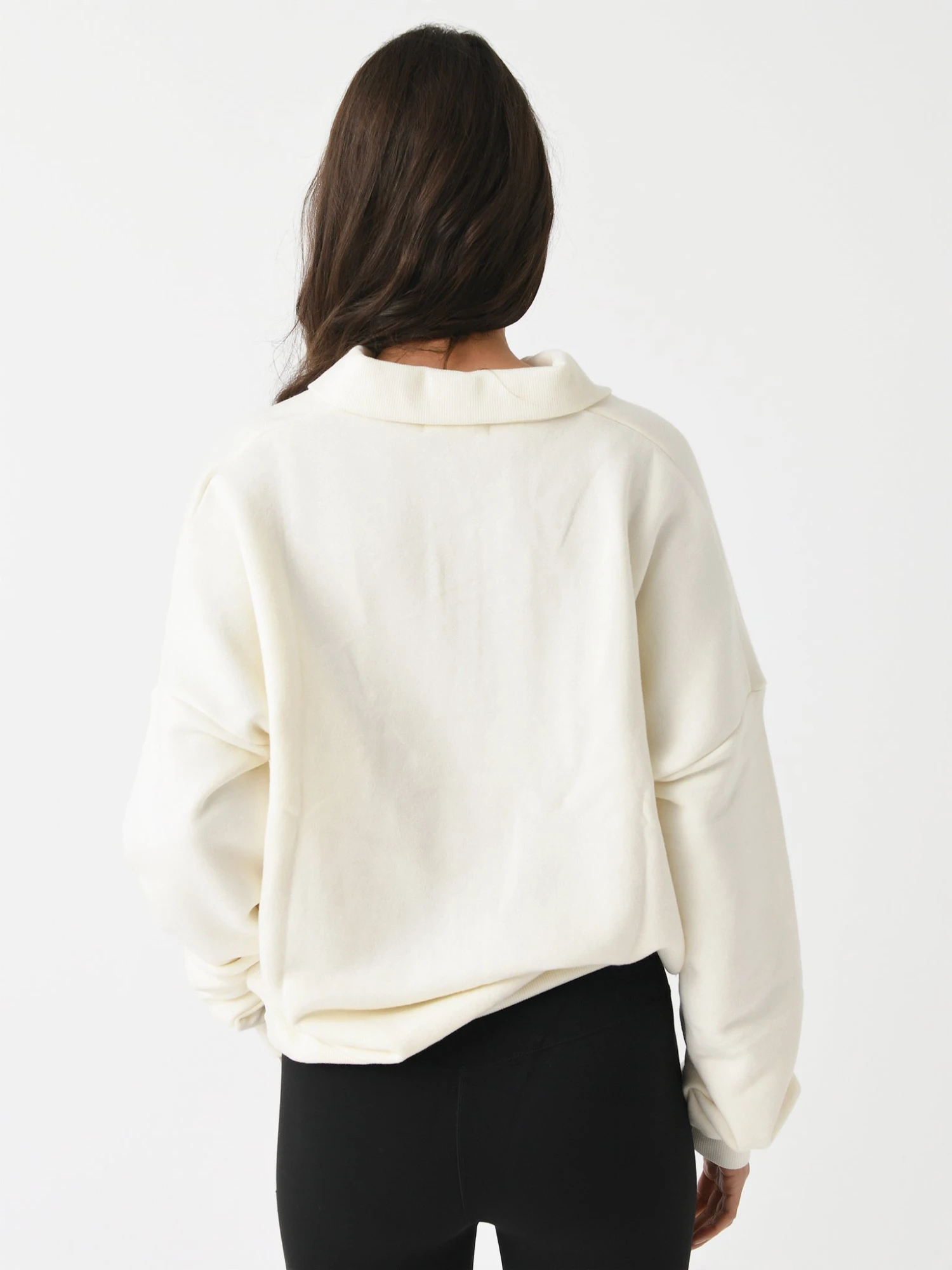 An oversized polo-style sweatshirt made from soft French terry fabric.