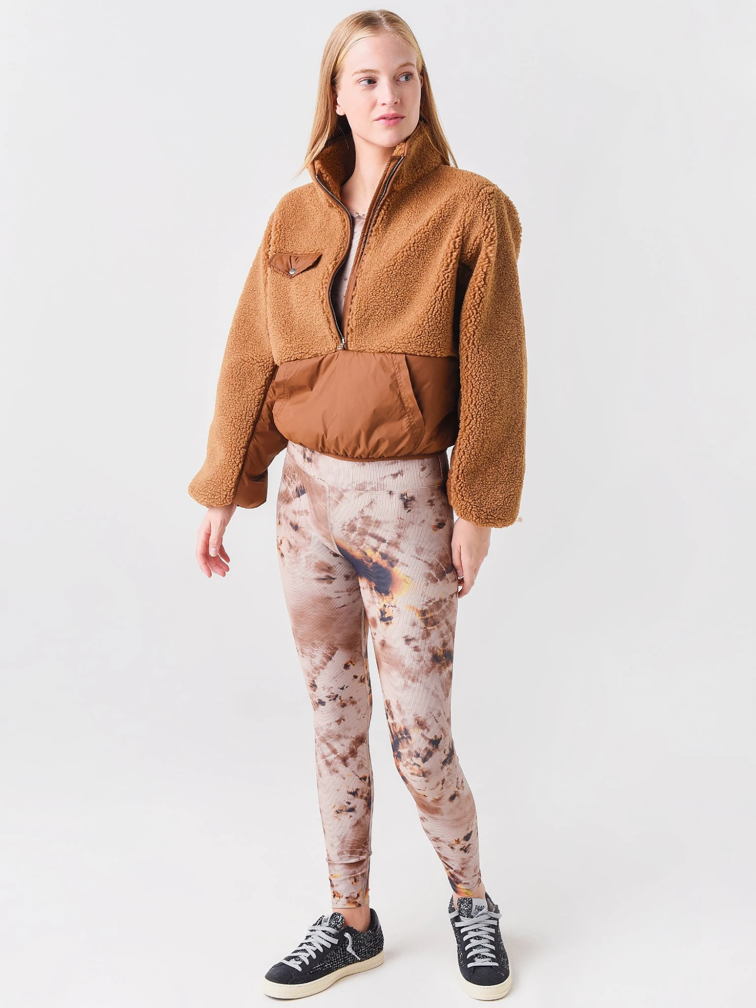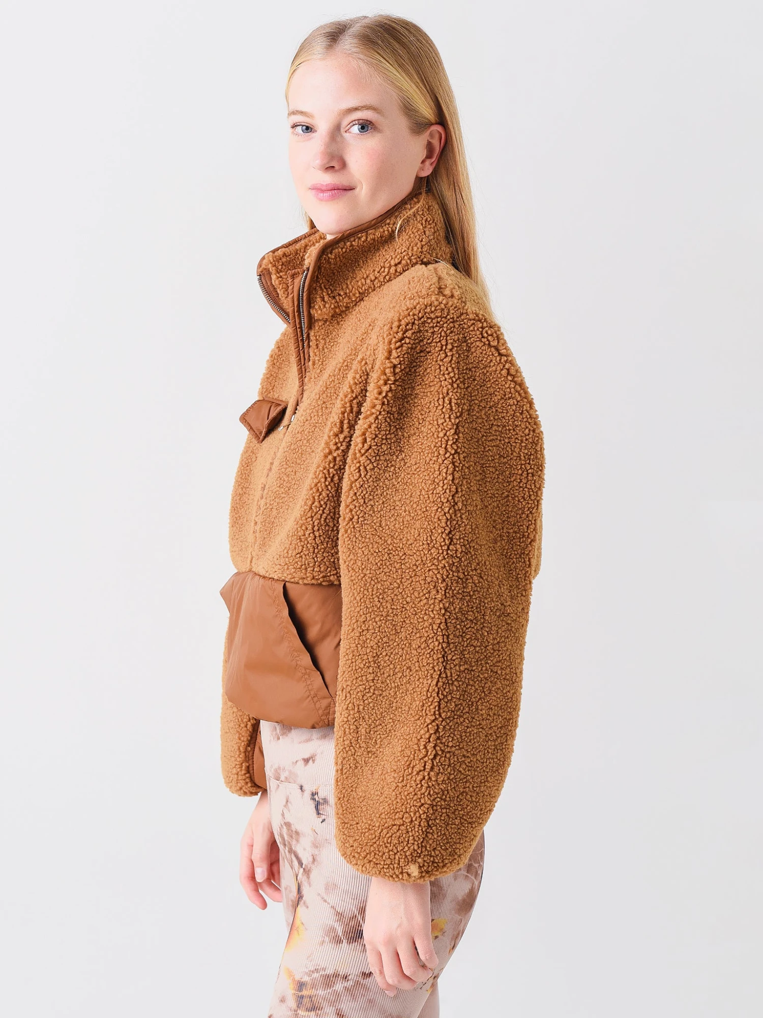 FEATURES:Pullover JacketMock Collar3/4 Zip ClosureRight Chest Pocket with Button ClosureKangaroo PocketFleece PanelsLong SleeveBanded CuffsRelaxed FitStraight Hem100% Recycled PolyesterModel is wearing size Small pullover sweater.Model’s Measurements: Height: 5’9.5″ | Bust: 32C | Waist: 26″ | Hips: 35.5″ | Dress: 2 (US)