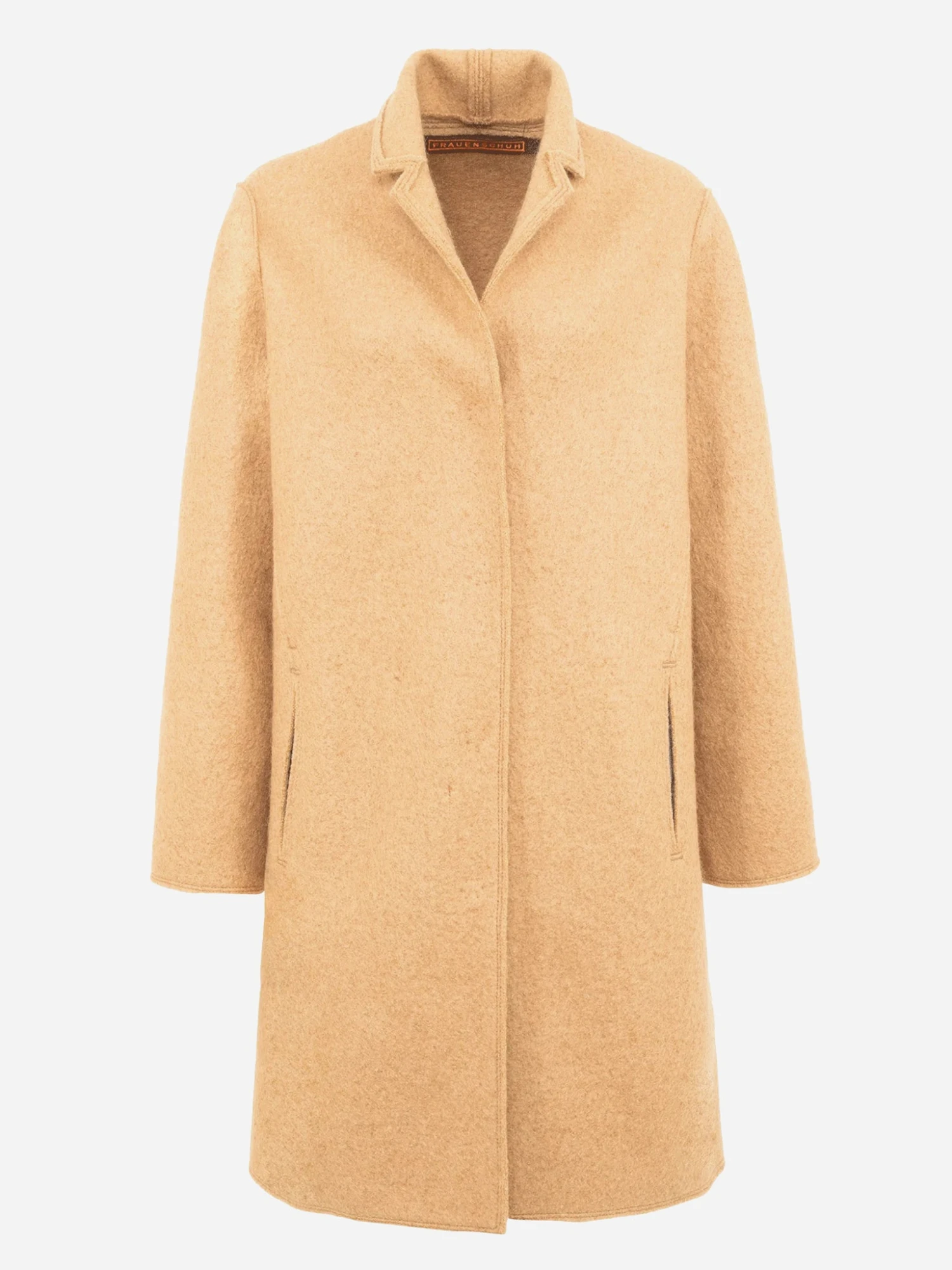 FEATURES:Notch CollarSide PocketsSnap Button ClosureLeather EdgesLong Silhouette70% Wool, 20% Mohair, 8% Polyamide, 2% LeatherRelaxed Fit