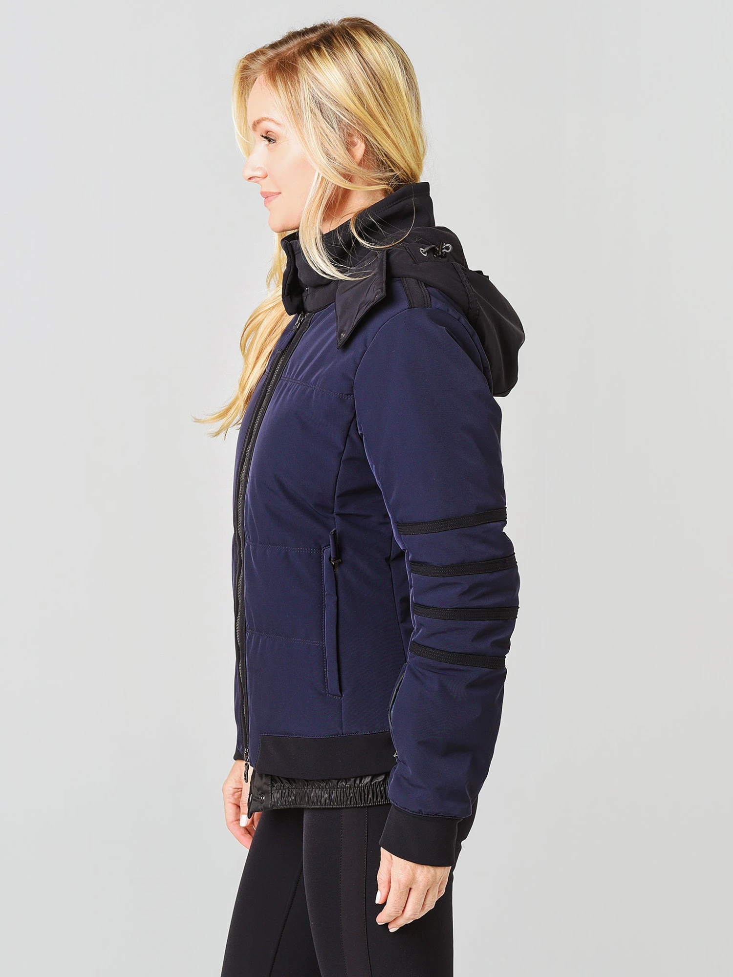 FEATURES:Ski JacketStand-Up CollarHooded; DetachableStitched stripe Details on ArmsMultiple Interior and Exterior PocketsDetachable Snow GuardWater-RepellentFull-Zip Closure, 2-Way ZipperPrimaloft Gold Padding76% Polyamide, 11% Elastane, 9% Polyurethane, 4% PolyesterModel is wearing size 1 jacket.Model’s Measurements: Height: 5’10”; Bust: 34C; Waist: 25.5″; Hips: 36″; Dress Size: 2-4 (US)