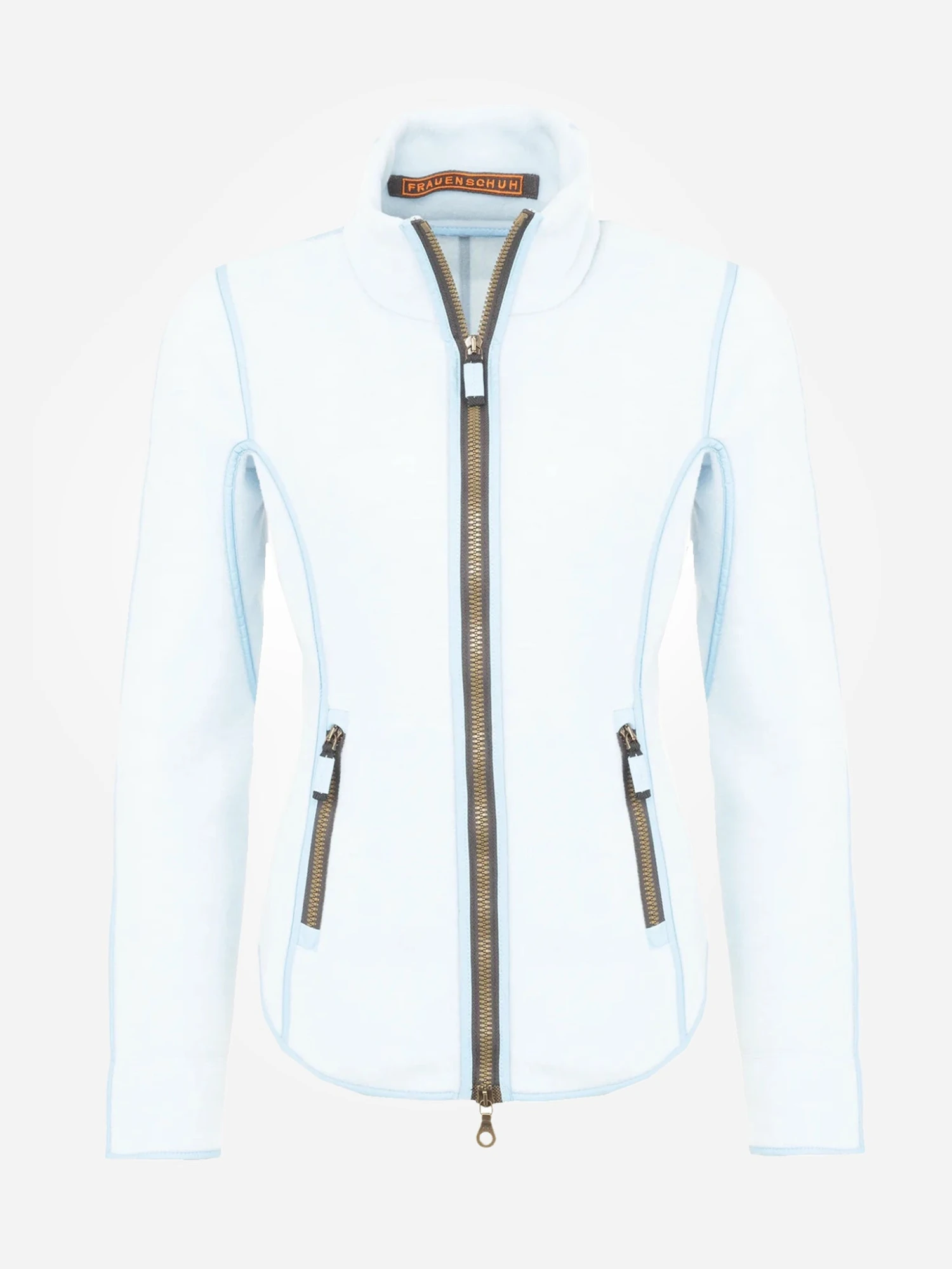 FEATURES:Stand-Up CollarReinforced CuffsZip Side PocketsTwo-Way Zip ClosureCurved HemPassepoil Seams4-Way StretchQuick-Drying & Heat-InsulatingPerformance Fabrication60% Polyester, 40% WoolSlim FitModel is wearing size 1 jacket.Rose, Glacier: Model’s Measurements: Height: 5’8.5″ | Bust: 32C | Waist: 25″ | Hips: 38.5″ | Dress Size: 4-6 (US)Heaven: Model’s Measurements: Height: 5’9″ | Bust: 34B | Waist: 26″ | Hips: 37″ | Dress Size: 2-4 (US)