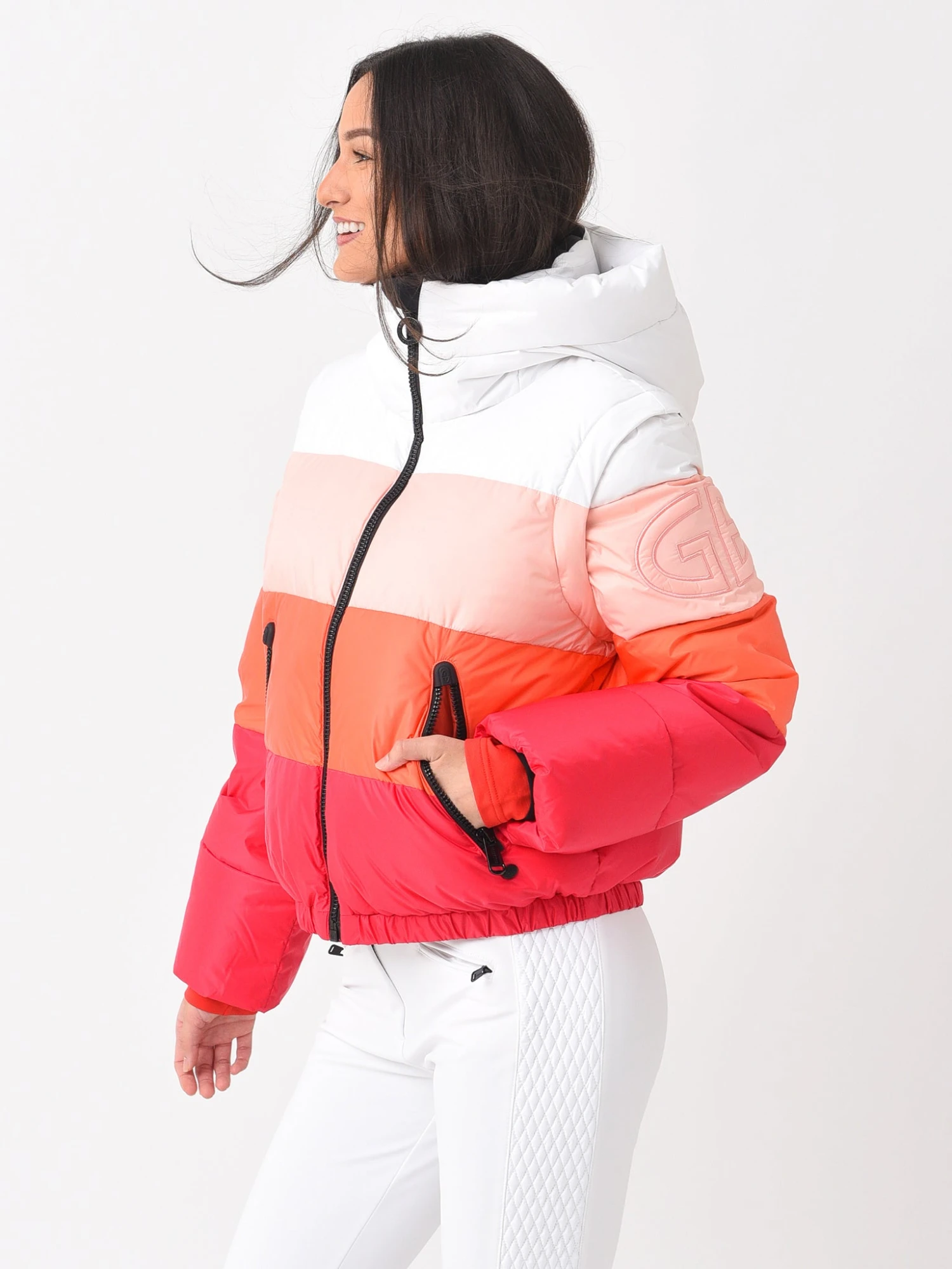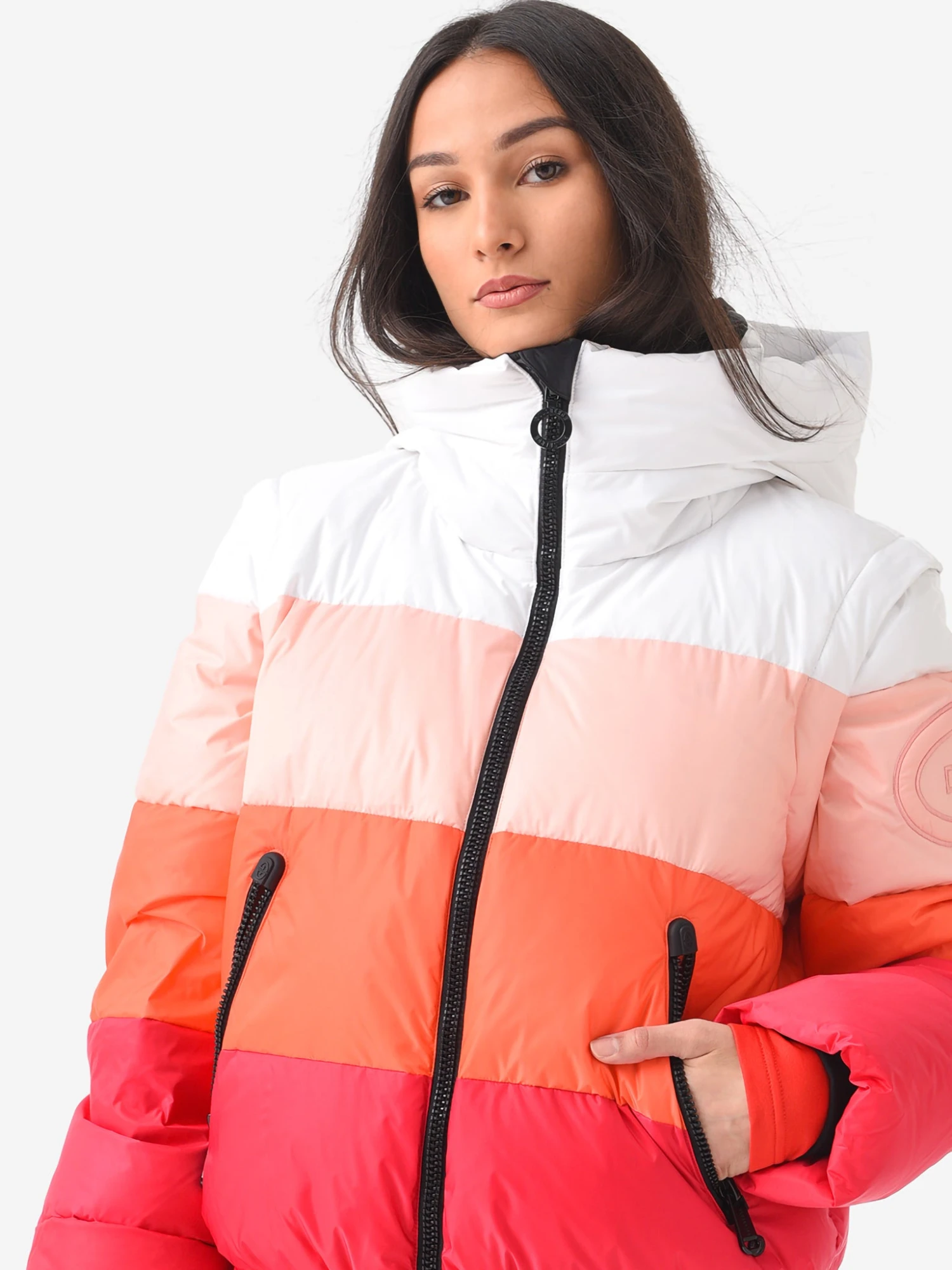 FEATURES:JacketFixed HoodHigh NecklineDetachable SleevesKnitted Cuffs at Inside Sleeves2 Pockets, 1 Inner Pocket, and A Sleeve Pocket for A SkipassDetachable SnowcatcherColor BlockingPartly Recycled Lining with Anti-Odour FinishRecycled Outershell FabricRDS Certified DownShell: 100% Recycled Polyamide | Lining: 50% Recycled Polyester, 50% Polyester | Fill: 90/10 Goose Down, 90% Down, 10% FeathersClassic FitModel is wearing size 36 jacket.Model’s Measurements: Height: 5’9″ | Bust: 32B | Waist: 24″ | Hips: 36″ | Dress Size: 2 (US)