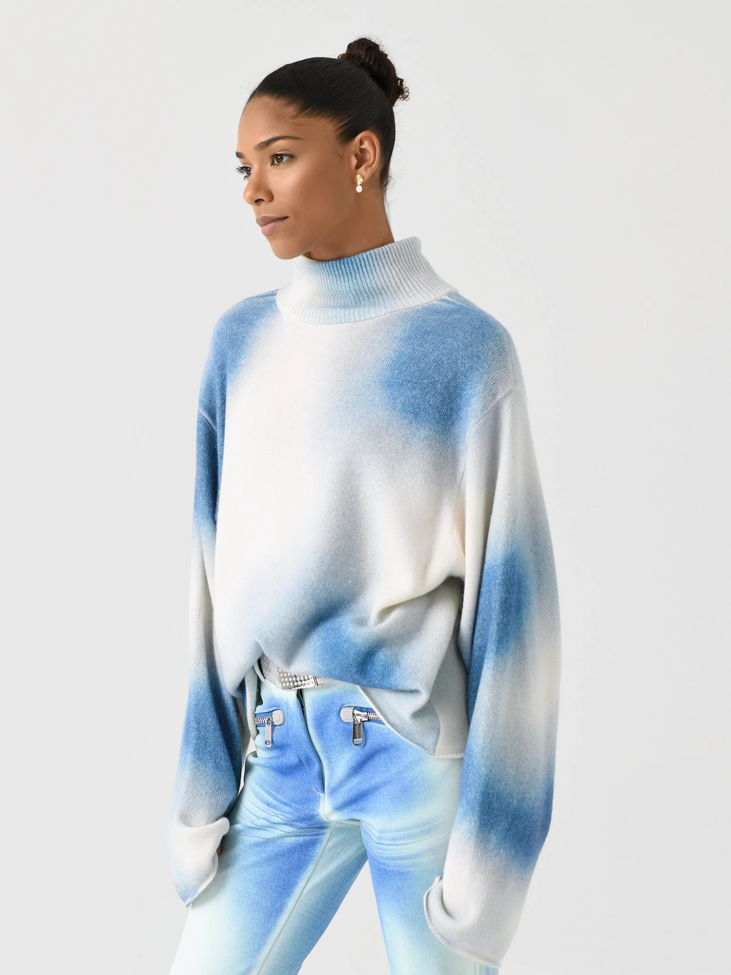 A boxy turtleneck sweater made from a soft merino wool blend and finished with a two-tone tie-dye print.