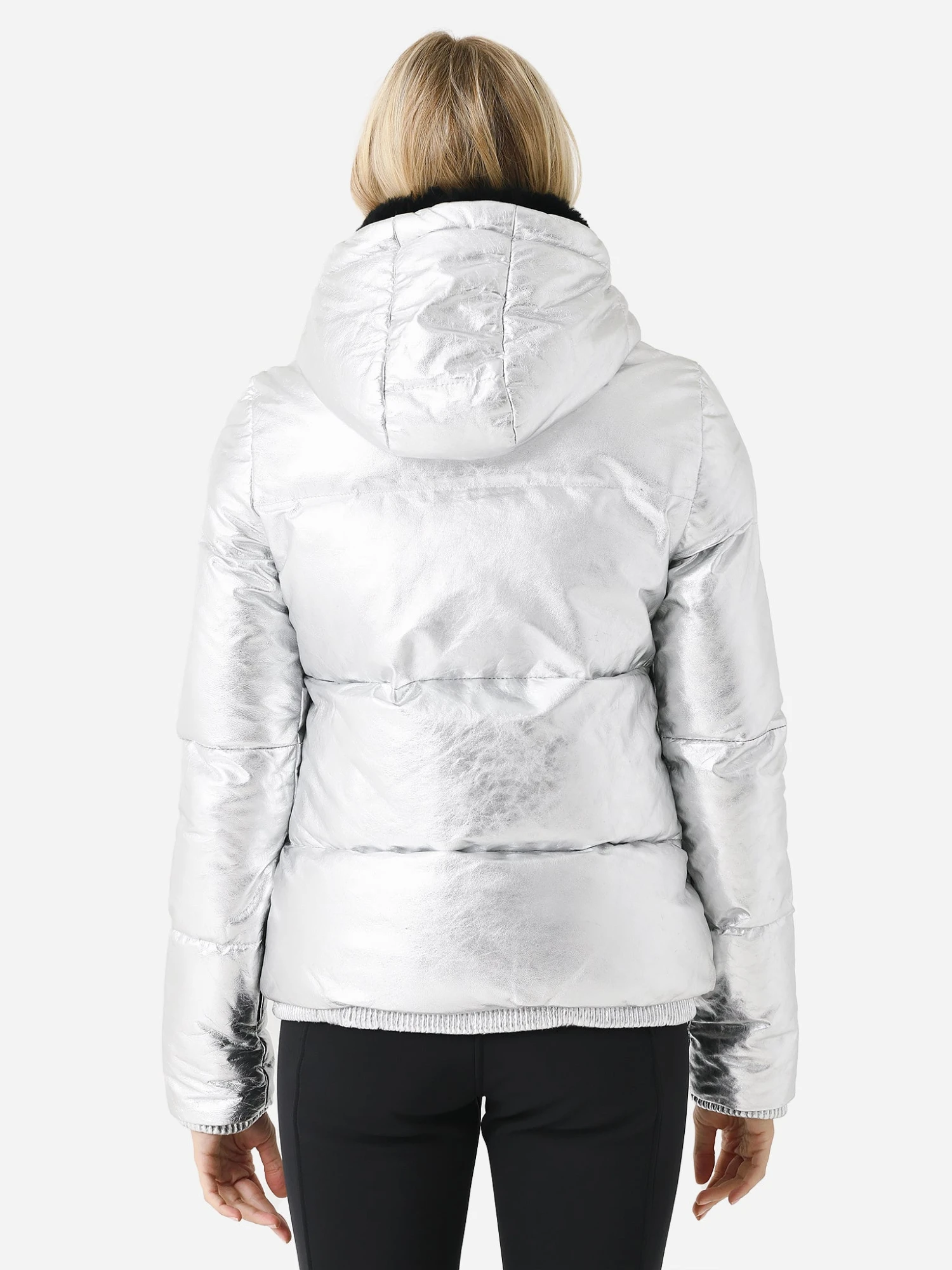 FEATURES:Fixed, Adjustable HoodShearling CollarHandwarmer PocketsSki Pass PocketElastic HemQuilted FabricationSynthetic Insulation100% LeatherClassic FitModel is wearing size Small jacket.Model’s Measurements: Height: 5’8″ | Bust: 34C | Waist: 26″ | Hips: 36.5″ | Dress Size: 2 (US)