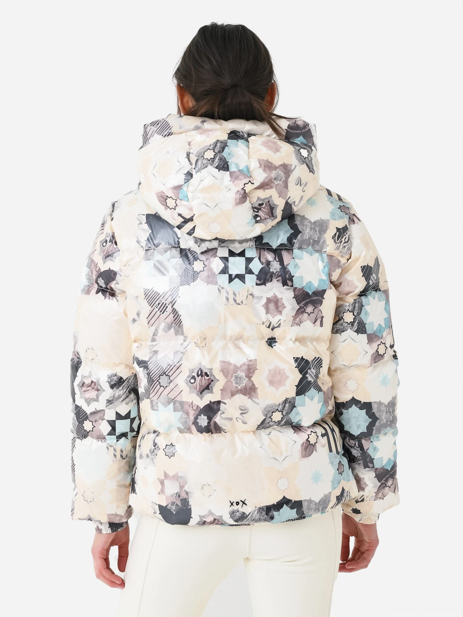 FEATURES:JacketHigh CollarFixed, Adjustable HoodLong Sleeve with Zip CuffsHandwarmer PocketsFull Zip ClosureAll-Over Novelty PrintHigh-Volume SilhouetteShell: 100% Polyamide | Lining: 100% Polyester | Insulation: 90/10 Goose DownClassic FitModel is wearing size Small jacket.Model’s Measurements: Height: 5’9.5″ | Bust: 34A | Waist: 26.5″ | Hips: 37″ | Dress Size: 2-4 (US)