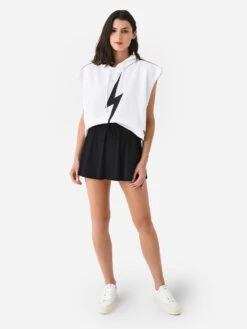 Aviator Nation Women’s Bolt Stripe Sleeveless Relaxed Cropped Pullover Hoodie