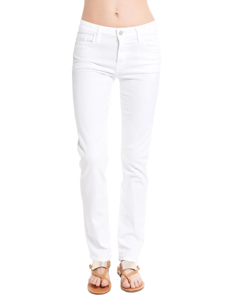 The J Brand Amelia Mid Rise Staight Jean is a clean 5 pocket design.