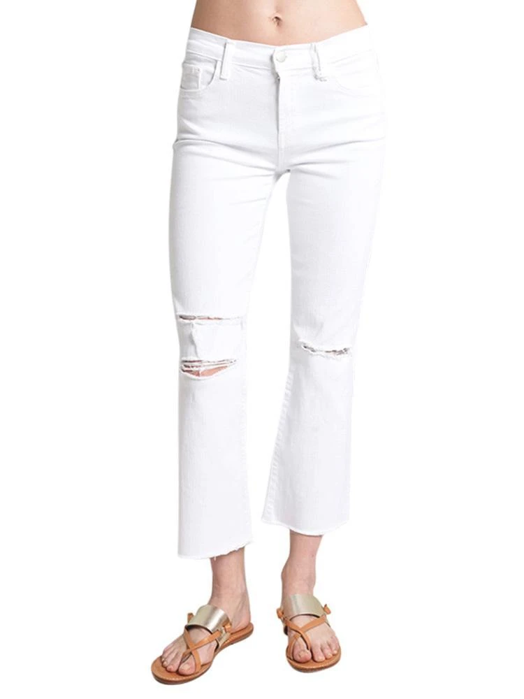 The J Brand Women’s Selena Mid Rise Crop Bootcut Raw Hem Jeans are right on trend in white with a raw hem.