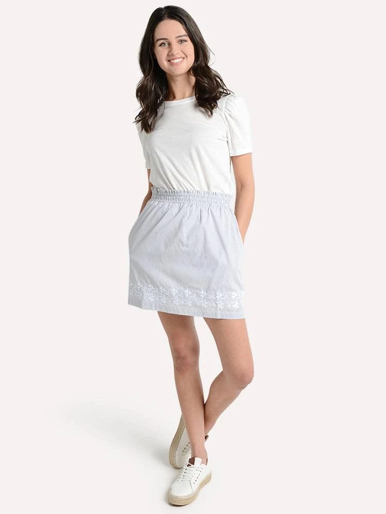 FEATURES:Elastic WaistbadSide Pocketsembroidered trim imported Styled with Hartloom top Style # 190AF1A. And Trenton Style # EVE. Model is wearing size small top and skirt.