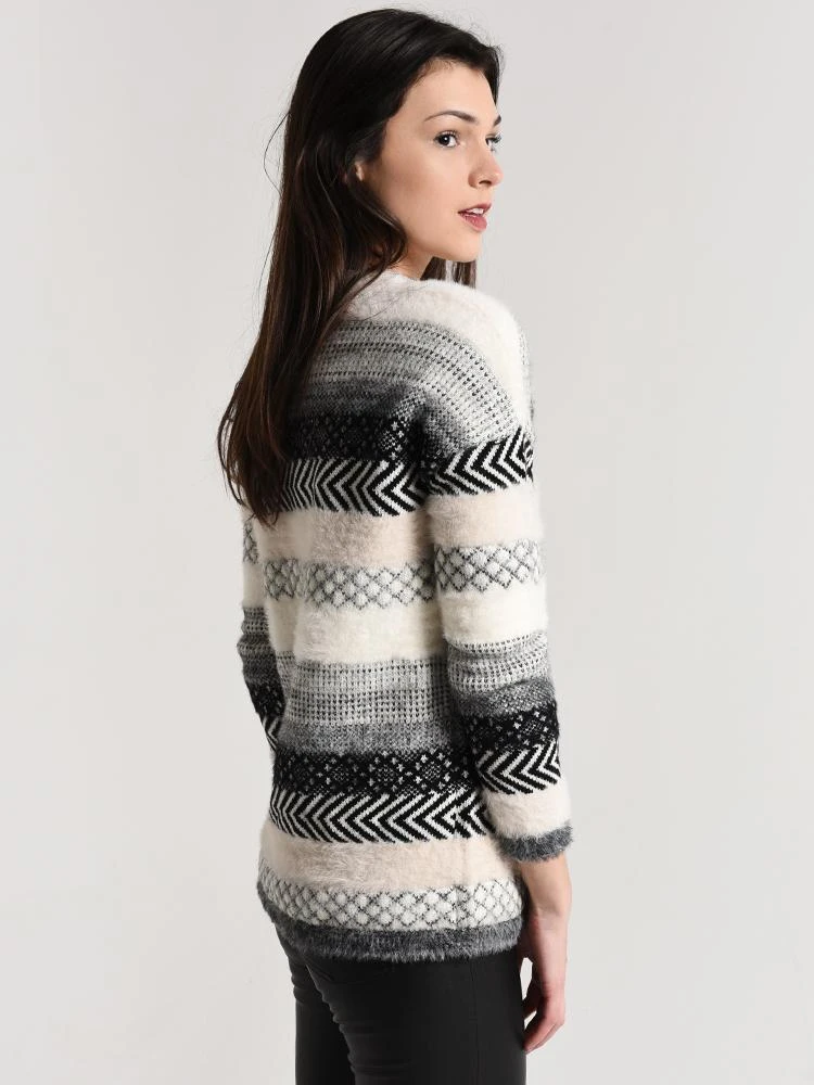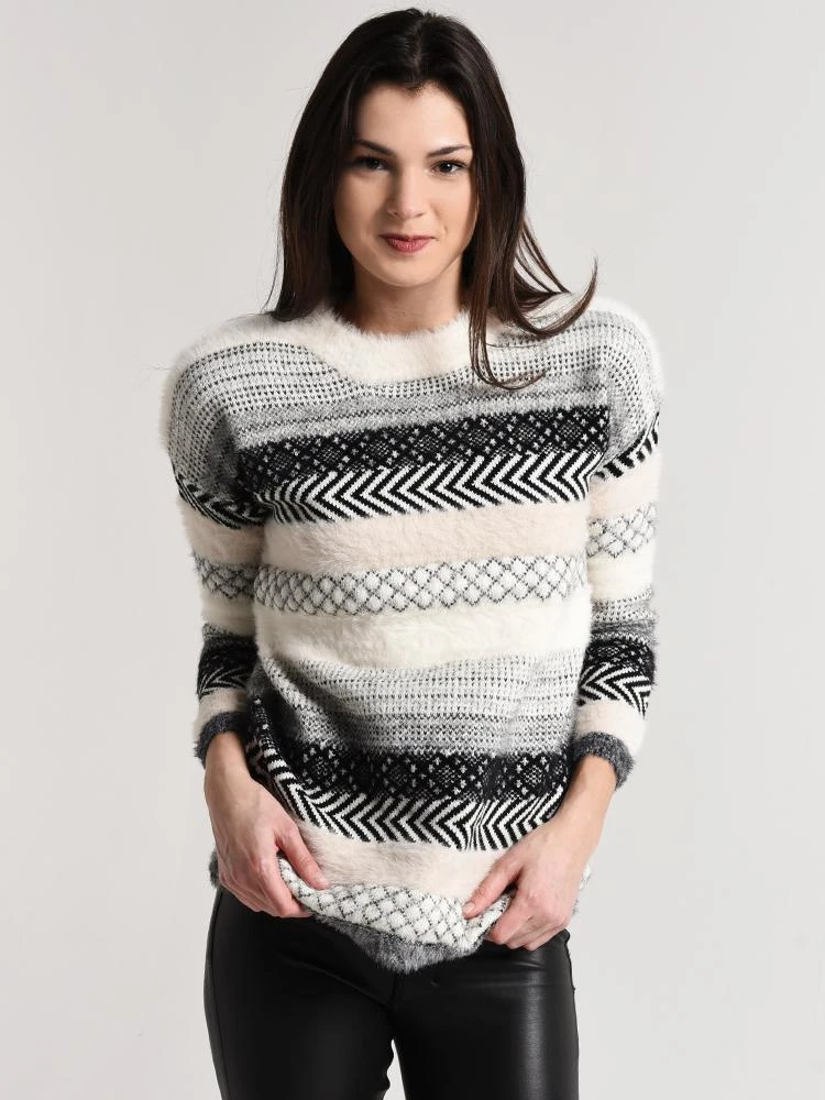 FEATURES:Crew NeckLong SleeveMixed Stripe DetailingSuper Soft Fuzzy Texture70% Polyester, 30% Acrylic
