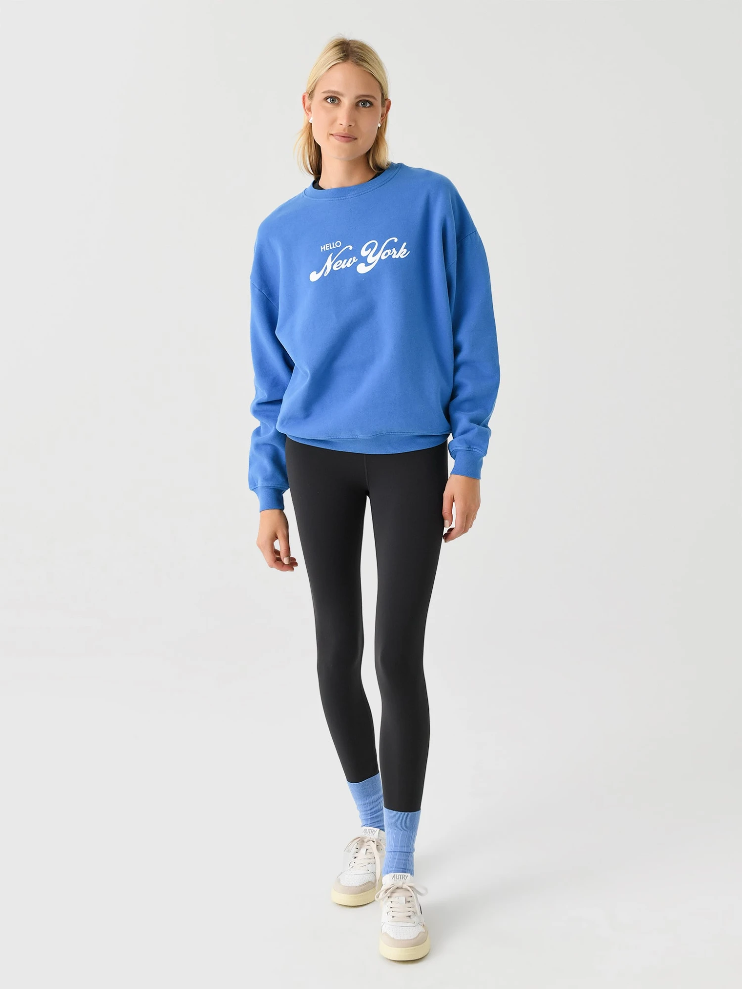 FEATURES:Crew NecklineDropped ShoulderFlocked GraphicBanded Cuffs and Hem100% Organic CottonRelaxed FitModel is wearing size Small sweatshirt.Model’s Measurements: Height: 5’10.5″ | Bust: 32B | Waist: 25.5″ | Hips: 36.5″ | Dress Size: 0-2 (US)