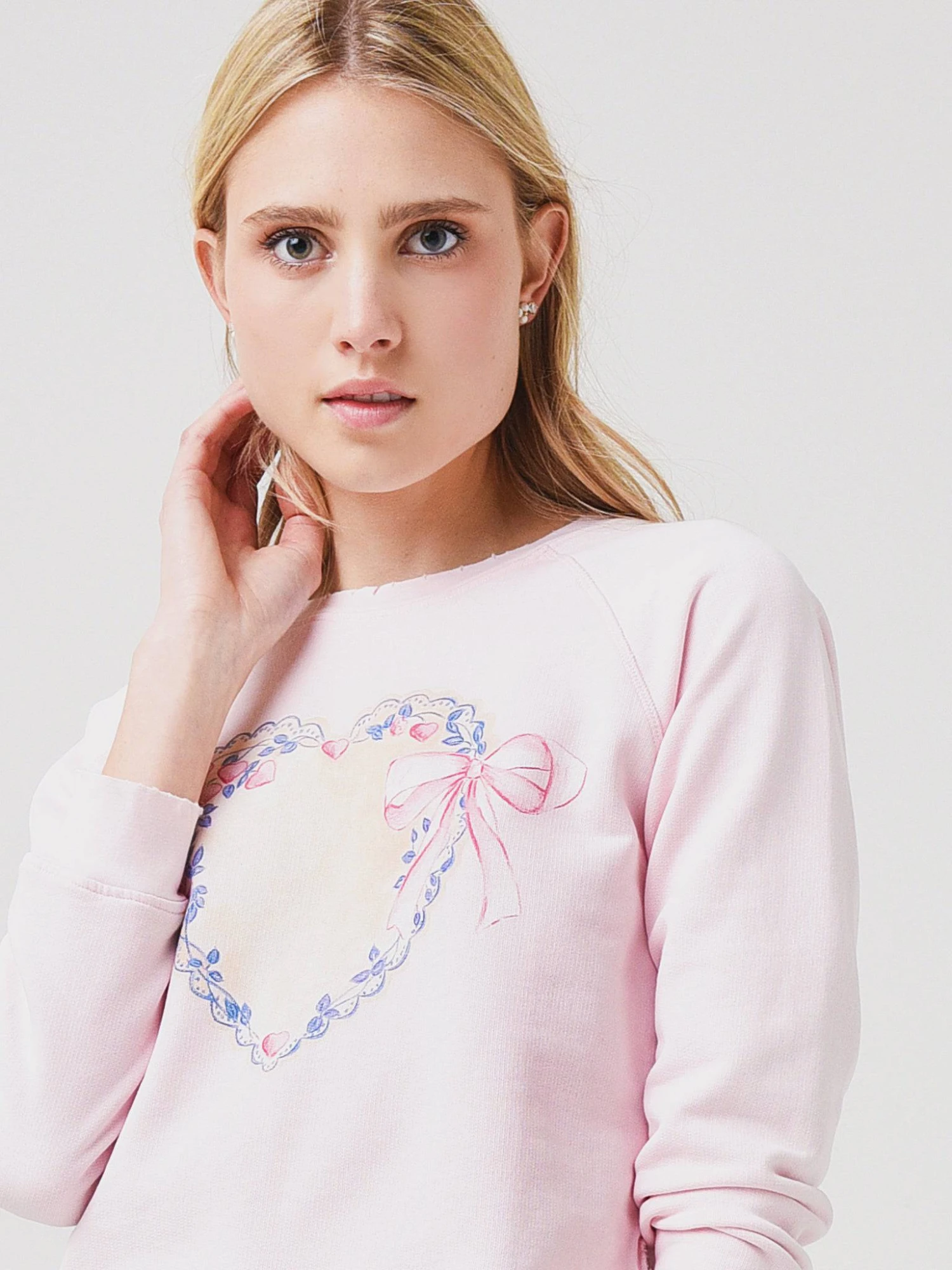 FEATURES:Pullover SweaterCrew NecklineLong Raglan SleeveOrnament Graphic on Front Banded Cuffs and HemDistressed EdgesSoft Fabrication100% CottonSlim FitModel is wearing size Small pullover sweater.Model’s Measurements: Height: 5’10.5″ | Bust: 32B | Waist: 24.5″ | Hips: 36″ | Dress Size: 2 (US)
