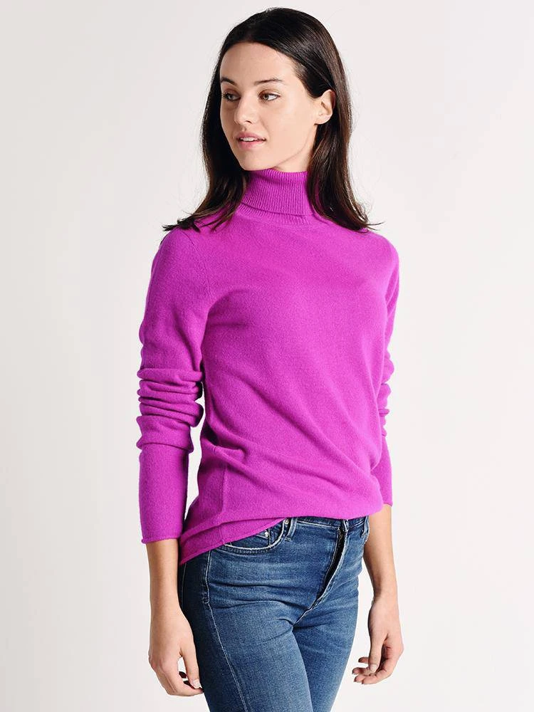 FEATURES:Turtleneck Long sleeves Raw trim at cuff and hem 100% cashmere Hand wash Styled with Citizens of Humanity jeans Style # 1416B-989 and Vince boots Style # G0397L1020. Model is wearing size 2 sweater and size 26 jean.