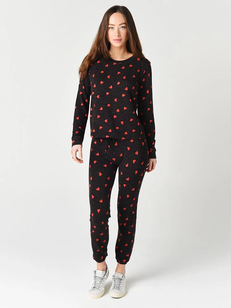 You`ll love how comfy you`ll feel Monrow Women`s All Over Heart Stitched Elastic Vintage Sweats. Perfect for a Rom-Com weekend.