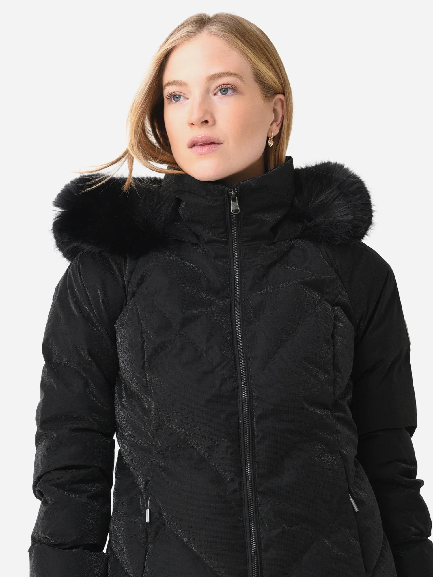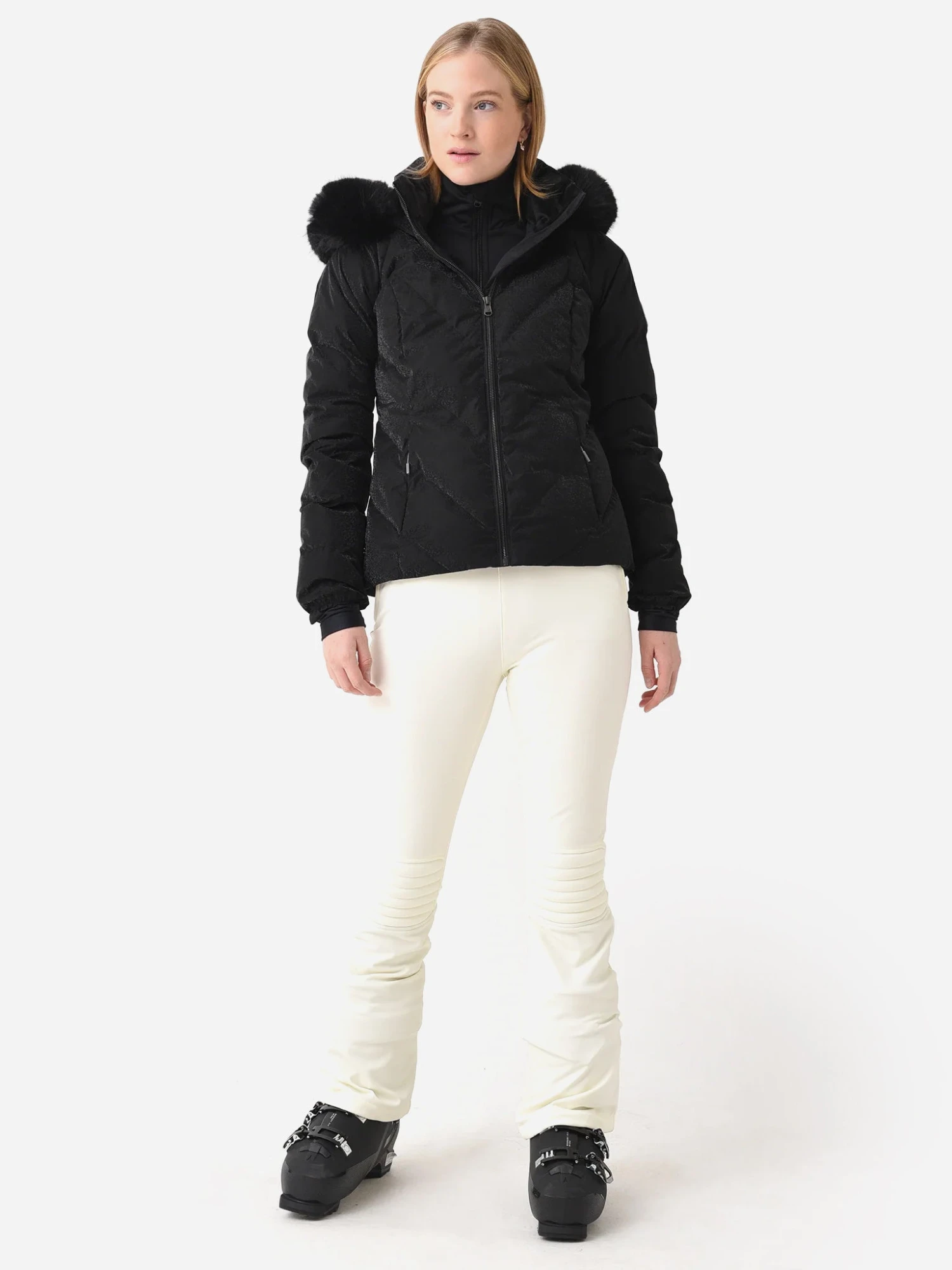 FEATURES:JacketInsulated, HydroBlock Sport TechnologySki Contour Articulation ConstructionZip-Through Stand Collar, Fleece Chin Warmer, Fuzzy Fleece-Lined CollarAttached, 2-Way Adjustable Hood with Removable Faux FurYKK Metaluxe ZippersInterior Windguard, Interior Fleece-Lined PanelsElasticized, Stretch Inner CuffsZipper Handwarmer Pockets, Interior Electronic Pockets, Key KeeperAdjustable, Water-Resistant Powder Skirt, Adjustable HemInsulation: 600 Fill Power Thermore® Ecodown InsulationModel is wearing size 4 jacket.Black Diamond, White Satin, Woodblock: Model’s Measurements: Height: 5’9.5″ | Bust: 32C | Waist: 26″ | Hips: 35.5″ | Dress Size: 2 (US)Apres Day, Velvet Turns: Model’s Measurements: Height: 5’9.5″ | Bust: 34A | Waist: 26.5″ | Hips: 37″ | Dress Size: 2-4 (US)