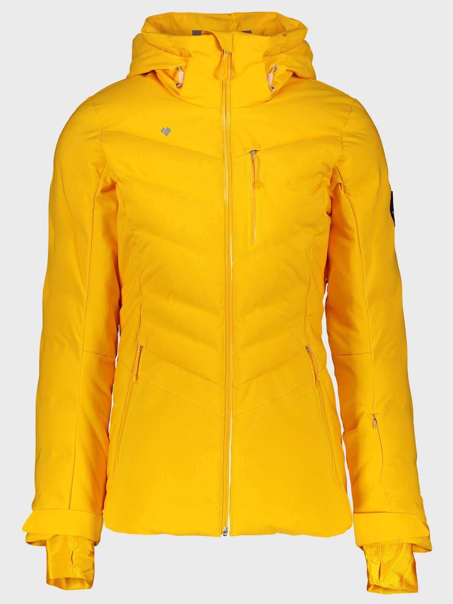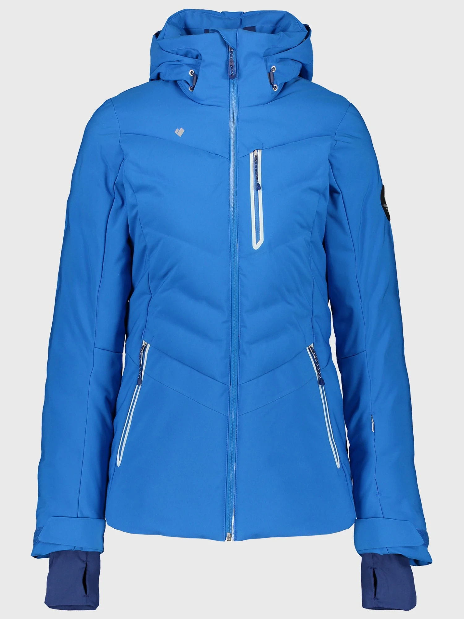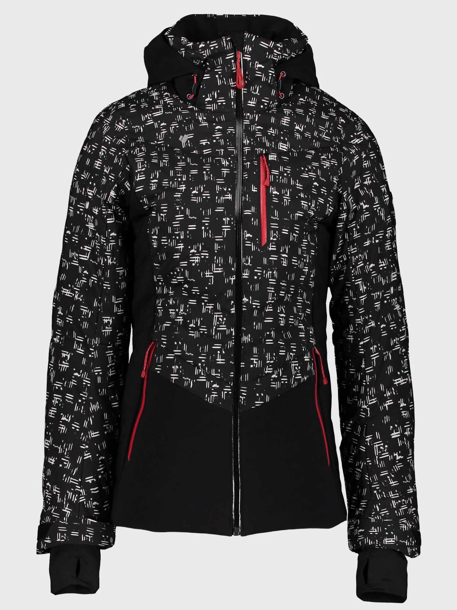 FEATURES:Ski JacketDown/Insulated, HydroBlock Pro Technology, Full-Motion Articulation Construction, Thermal Zone Distribution Mapped InsulationZip-Through, Stand Collar, Fuzzy Fleece-Lined Collar, Fleece Chin WarmerRemovable, Adjustable HoodYKK AquaGuard ZippersZipper Handwarmer Pockets, Zipper Chest Pockets, Pass Pocket, Interior Electronics Pocket, Interior Goggle Pocket, Cord Routing Guide, Accessory Ring, Key Keeper, Detachable Scratch-Free Goggle ClothBonded Construction, Seamless Bonded Quilting ThroughoutCZV – Control Zone Ventilation, Mesh Gussets, Breathing VentsAdjustable Cuffs with Hook-and-Loop Tab, Thumbhole Inner Cuffs,Snap-Away Water-Resistant Powder Skirt, Adjustable HemInsulation: Allied Feather & Down 550 Fill Power Duck Down Upper Body; Outer Sleeve & Hood; Thermore® Classic 115gm Lower Body; Side Body & Underarm SleeveModel is wearing size 4 jacket, size small sweater and size 6 pant. Model’s Measurements: Height: 5’9.5″; Bust: 34A; Waist: 26.5″; Hips: 37″; Dress Size: 2-4 (US)