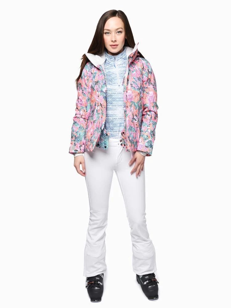StretchActive FitStyled with Obermeyer baselayer style # 19017W, Obermeyer pant style # 15045 and Tecnica ski boot style # 20156200062. Model is wearing size 4 jacket, Medium baselayer and size 4 pant.
