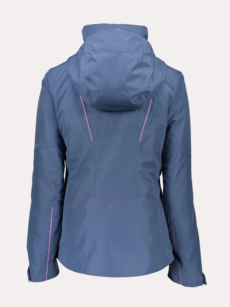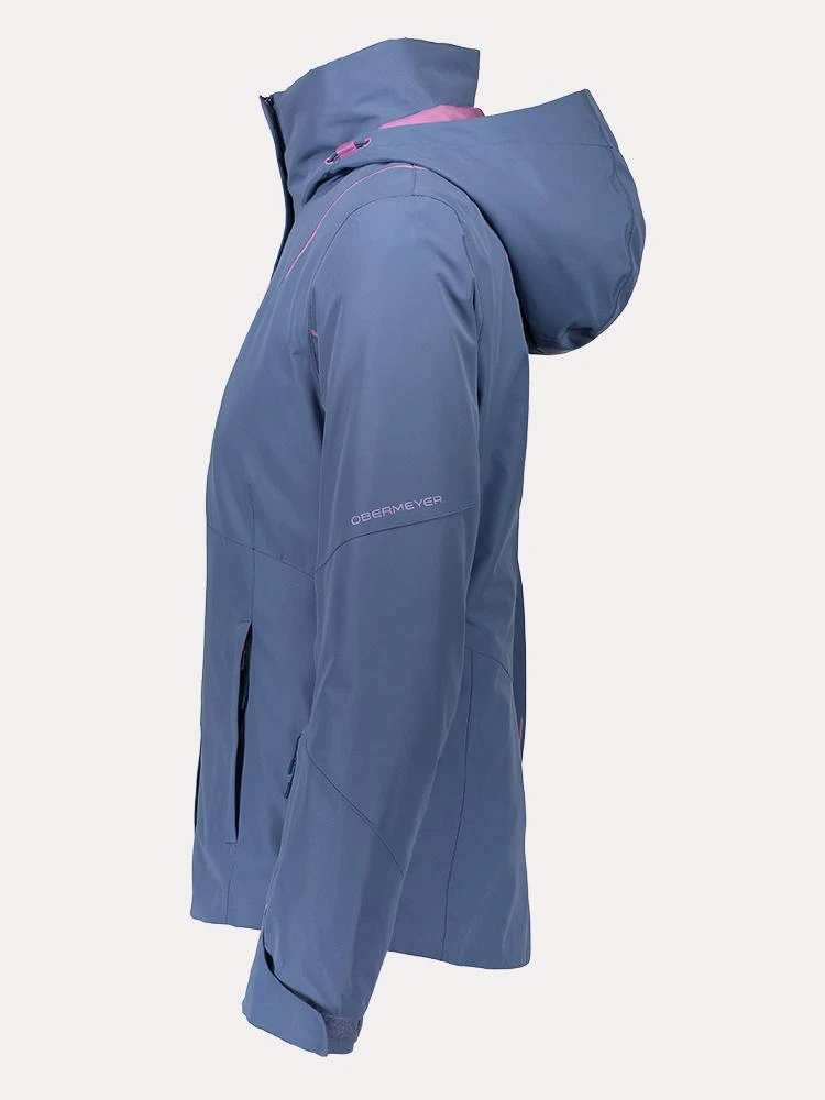 FEATURES:FABRIC Shell: Black, Dreaming of Spring, Spritz, Drop the Beet: HydroBlock Sport 100% Polyester Twill Weave. Bluestone: HydroBlock Sport 100% Polyester Peached Plain Weave. Insulator SIDE A: HydroBlock DWR 100% Polyester Fine Denier Plain Woven; SIDE B: 100% Polyester Double-Sided Brushed FleeceObermeyer independently third party tests all of its technical fabrics for performance verification. Our high performance specialty fabrics use fully coated hydrophobic laminations and a superior DWR polymer coating for stain protection and coating integrity. HydroBlock Sport resists up to 10,000mm before water penetration while allowing 10,000 grams of water vapor to pass through within a 24-hour time frameFully seam sealedRemovable hoodAdjustable hoodYKK AquaGuard zipper(s)2-way, front zipperZipper hand pocket(s)Zipper chest pocket(s)Zipper sleeve pocket(s)CZV – Control Zone VentilationInterior electronics pocket(s)Cord routing guideInterior stash pocket(s)