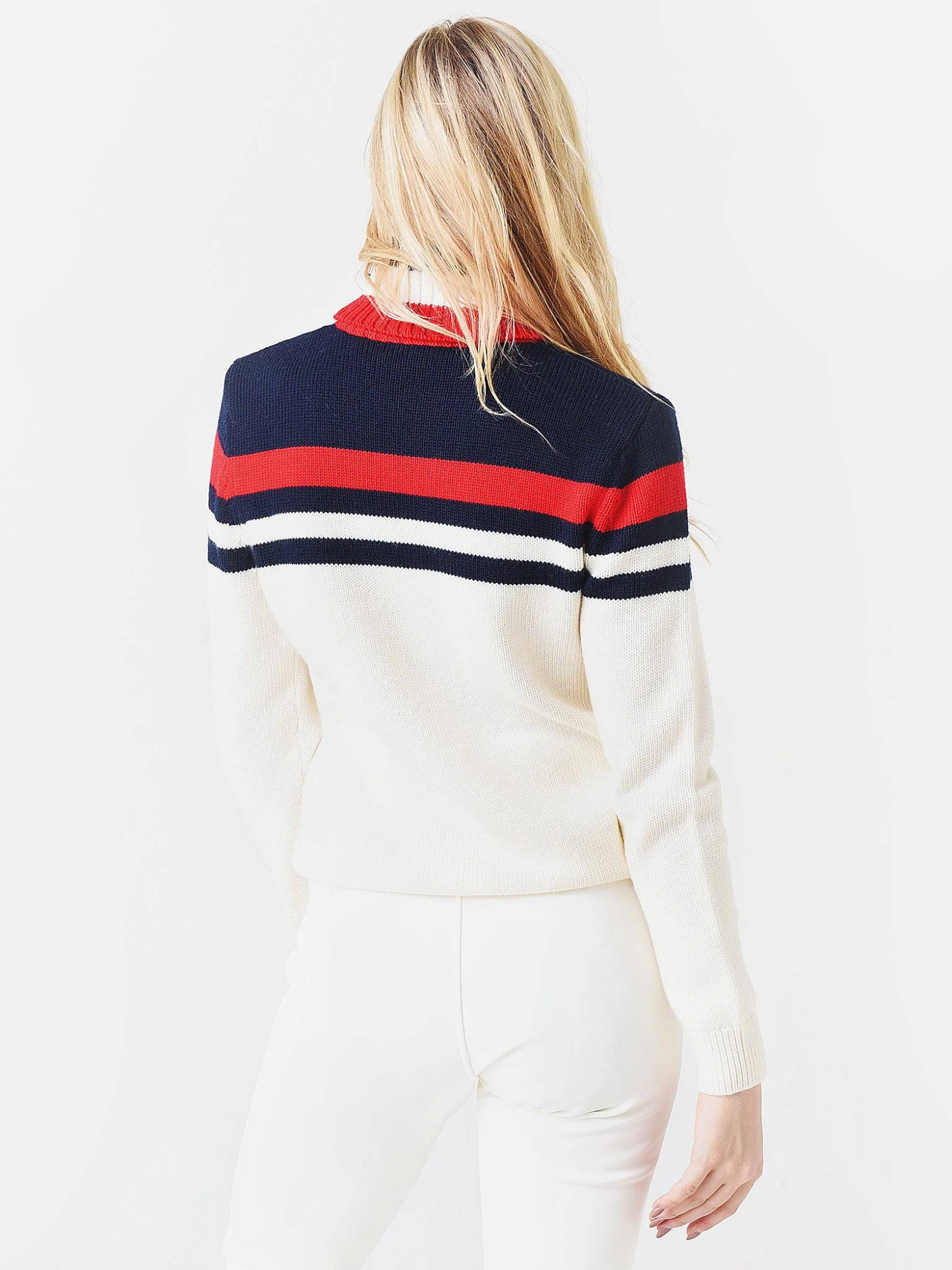 FEATURES:SweaterTurtleneckNovelty Zigzag Intarsia DesignLong SleeveSignature Perfect Moment North Star on CuffRibbed Knit TrimExtra-Fine Bellia Yarn Merino WoolRelaxed FitStraight Hem100% Merino WoolModel is wearing size Small sweater.Model’s Measurements: Height: 5’9″ | Bust: 34B | Waist: 26″ | Hips: 37″ | Dress Size: 2-4 (US)