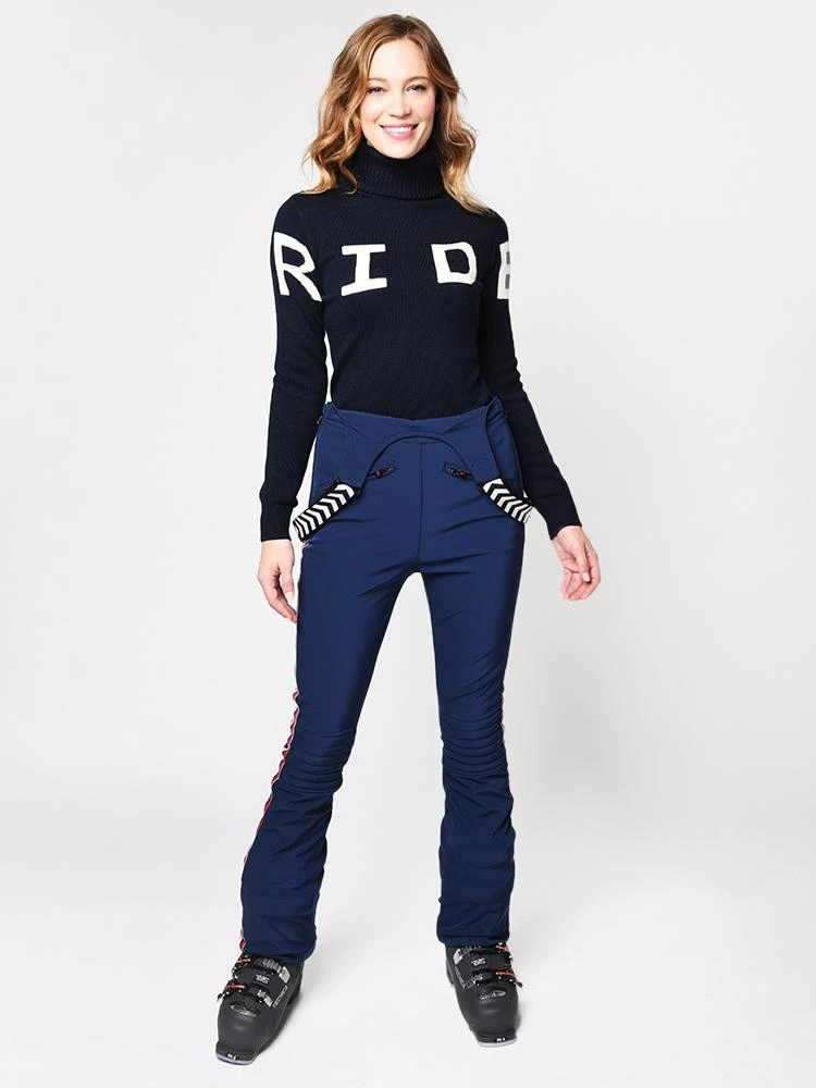 FEATURES:Ski SweaterRolled TurtleneckRIDE Intarsia Knit Across Sleeves and FrontRibbed Neck, Cuffs and HemExtra Fine Merino Wool Fabrication Using Beilla Yarns100% Merino Wool Styled with Perfect Moment ski pant style # W18W053 and Tecnica ski boot style # 20156200062. Model is wearing size Small sweater and pant.