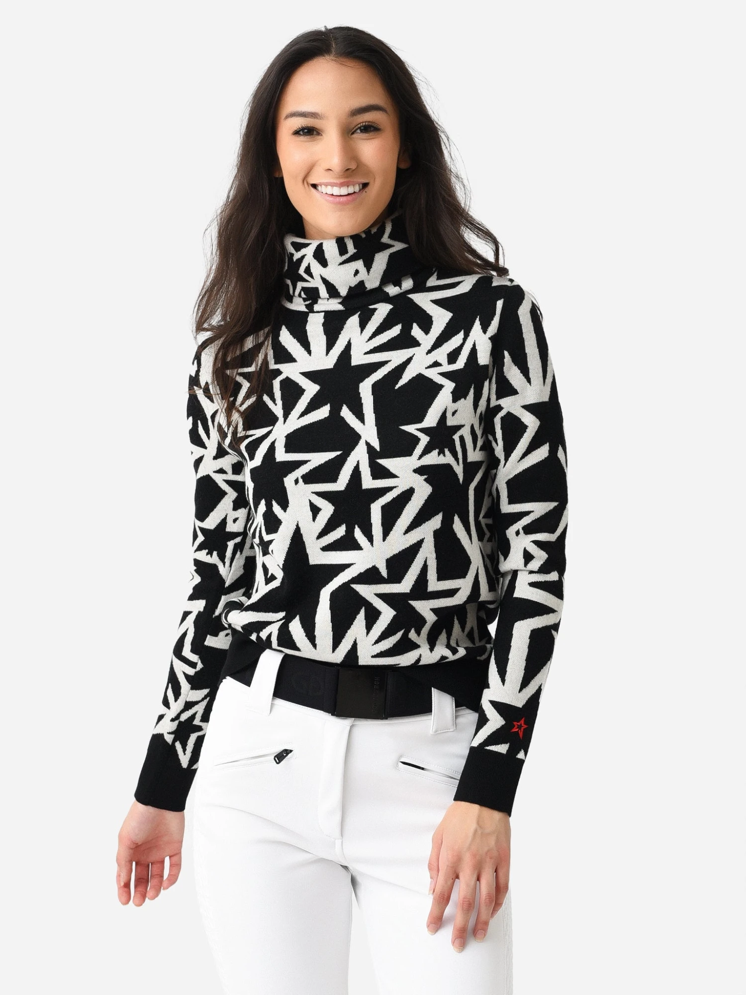 FEATURES:SweaterTurtleneckLong SleeveStraight HemAll-Over Novelty PrintKnit FabricationClassic Fit100% Merino WoolModel is wearing size Small sweater.Model’s Measurements: Height: 5’9″ | Bust: 32B | Waist: 24″ | Hips: 36″ | Dress Size: 2 (US)