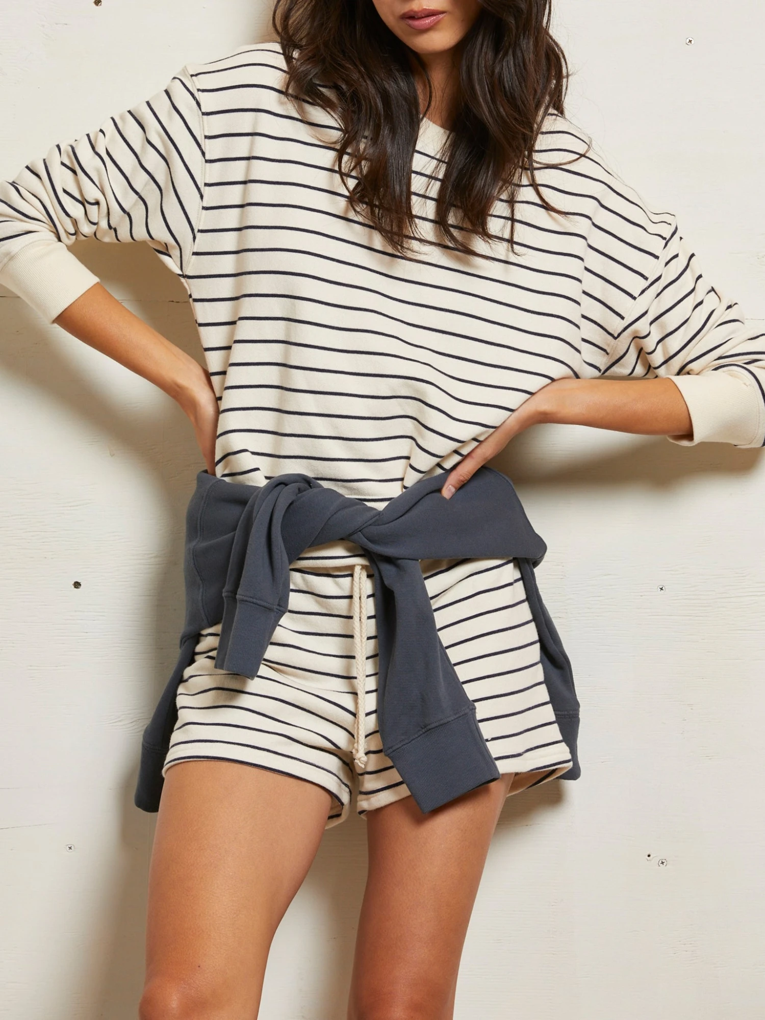 A cozy striped pullover made from incredibly soft French terry fabric.