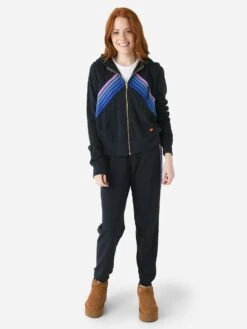 Aviator Nation Women’s Rainbow Heart Stitch Sleeveless Relaxed Cropped Pullover Hoodie
