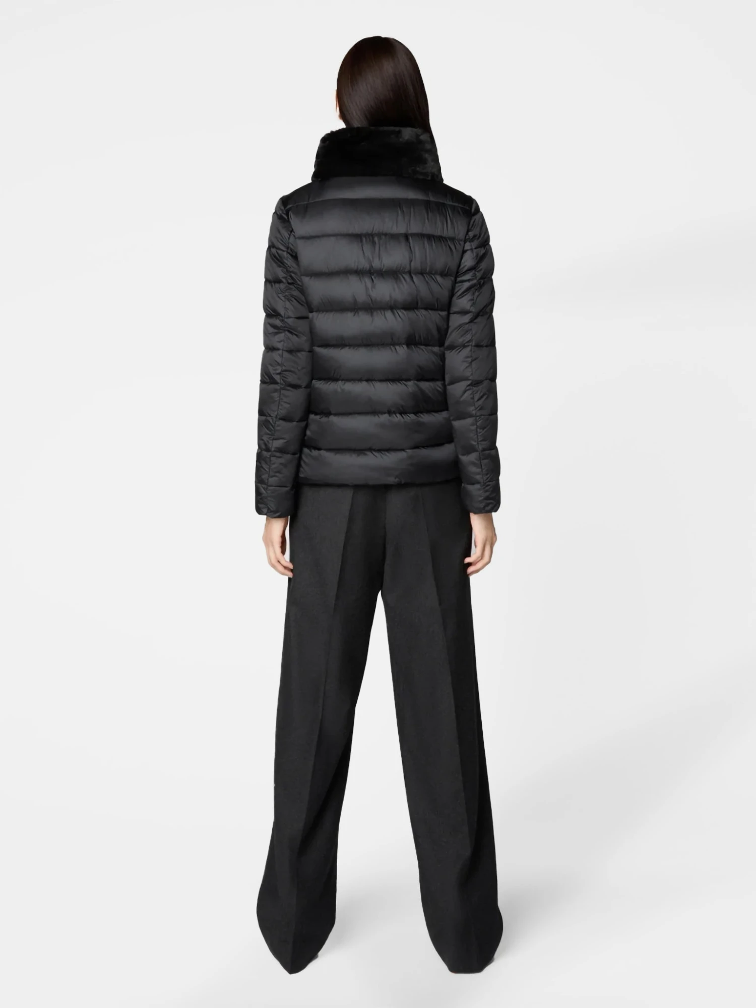 FEATURES:Insulated JacketFaux Fur CollarDouble Slider Zip ClosureSide Zip PocketsShiny, Iridescent LookLong SleevesQuilted Stitching100% Animal FreeOeko-Tex®100% NylonModel is wearing size Small jacket.Model’s Measurements: Height: 5’9″ | Bust: 32B | Waist: 24″ | Hips: 36″ | Dress Size: 2 (US)
