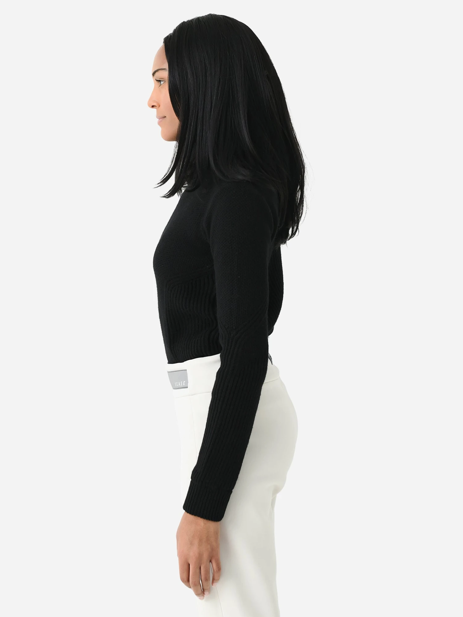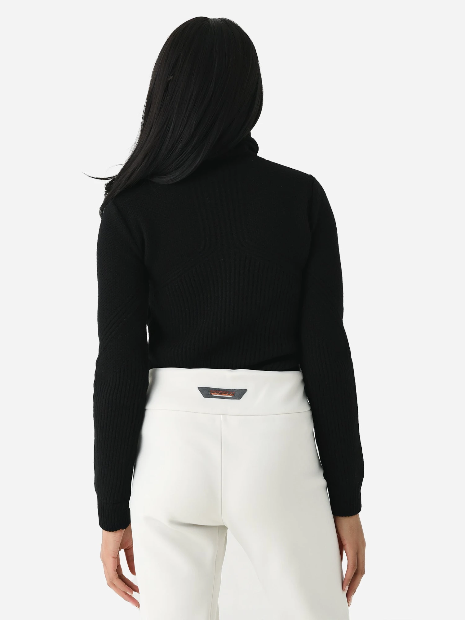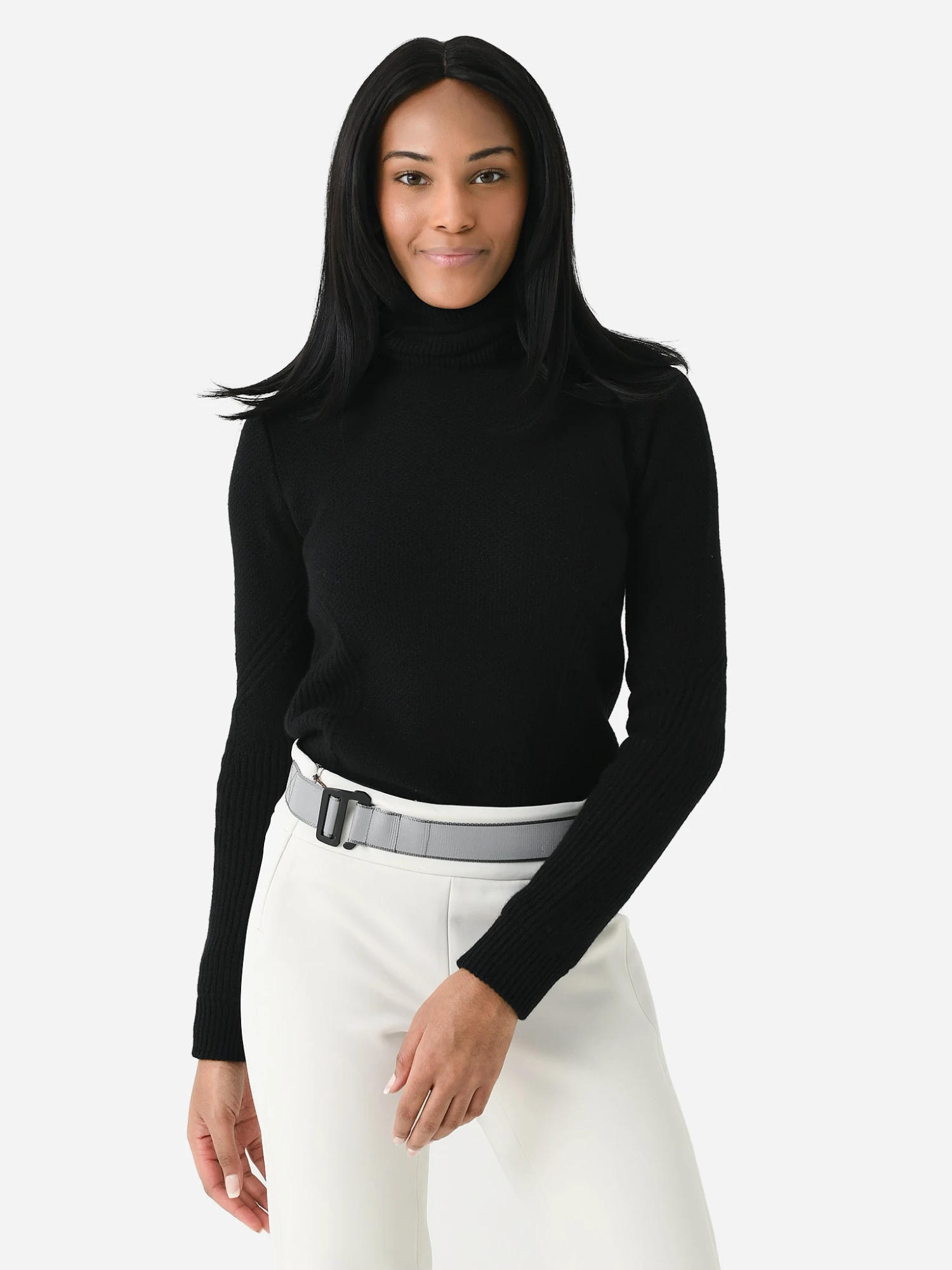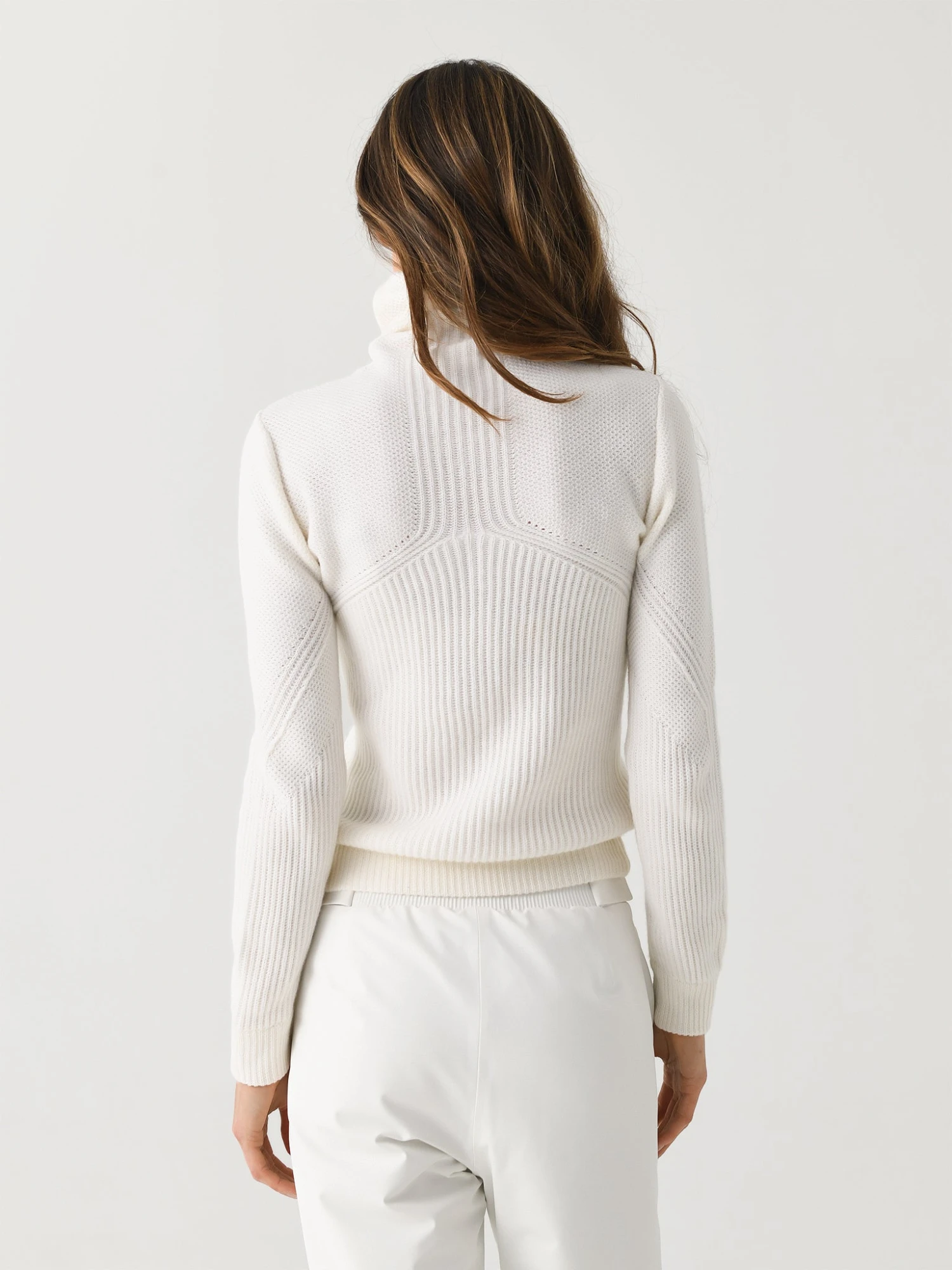 This cashmere turtleneck features a versatile neckline that can be worn as a headband for protection from the cold elements.
