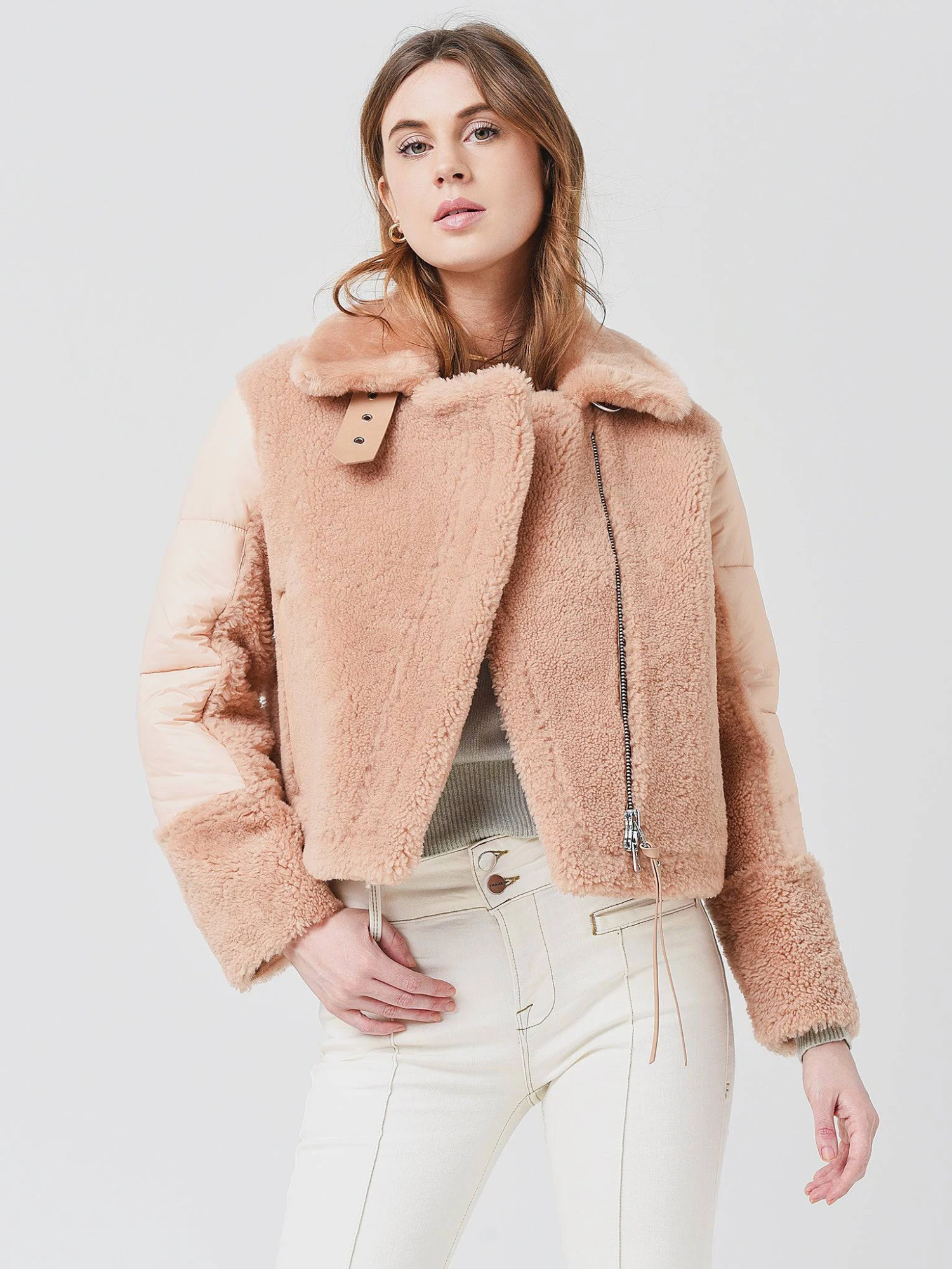 FEATURES:Puffer JacketWide Spread Collar w/ Buckle ClosureAsymmetrical Front Zip ClosureLong SleeveWaist Welt PocketsCropped SilhouetteShearling FabricationFront: 100% Dyed Lambskin | Back Shell: 100% Polyamide | Back Lining: 100% Polyamide | Fill: 100% Recycled PolyesterClassic FitModel is wearing size Small jacket.Model’s Measurements: Height: 5’11” | Bust: 32D | Waist: 24″ | Hips: 34″ | Dress Size: 0-2 (US)