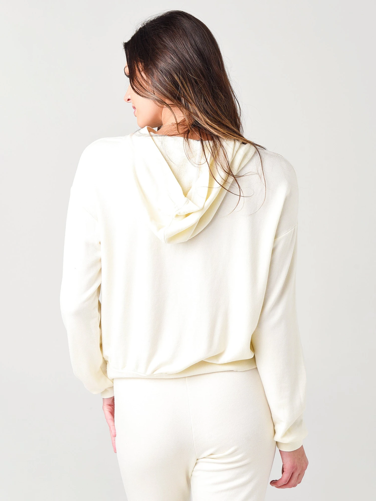 Add a fashionable twist to your hoodie game with the Stateside Women’s Viscose-Fleece Twist Front Hoodie.