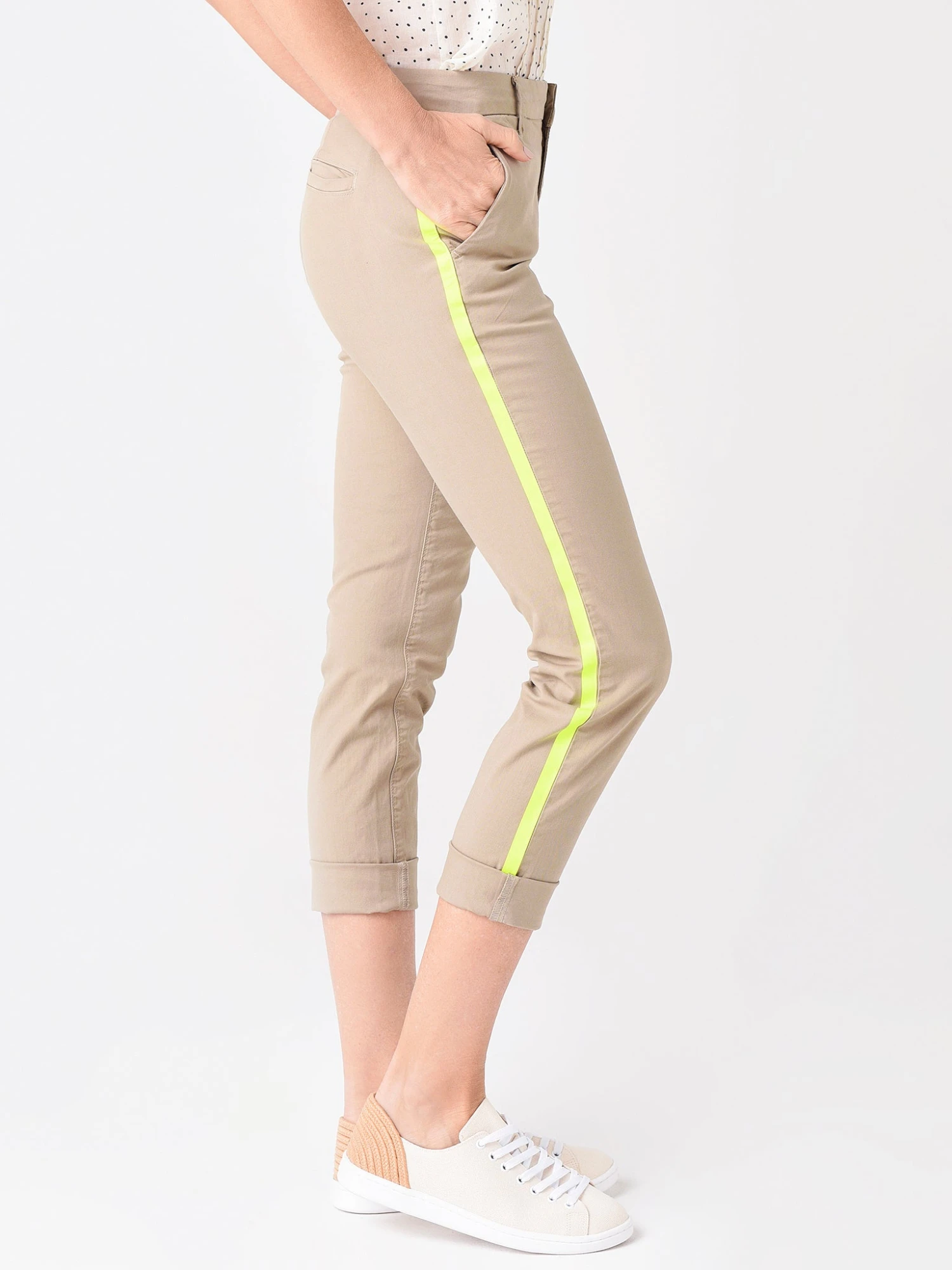 Update your spring chinos with a fun pop in the Sundry Women’s Stripe Roll Up Trouser.