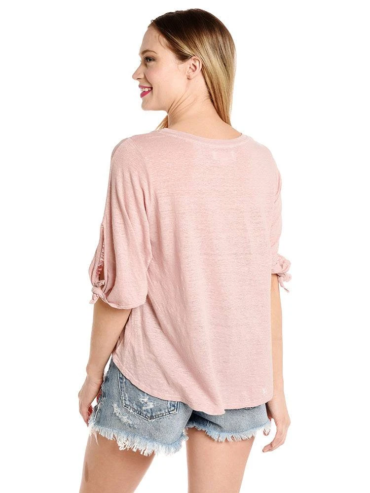 FEATURES:97% LINEN 3% ELASTANETie Sleeve3/4 sleevesMade in the USA Styled with AGOLDE Jean Style # A018C-799. Model is wearing size small top and 26 jean.