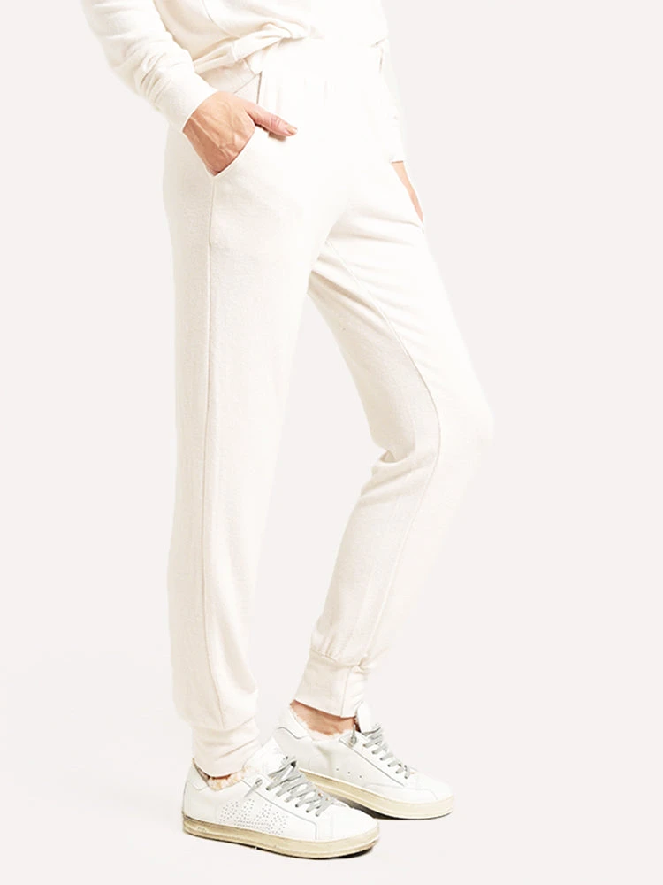 FEATURES:Jogger PantSoft Cozy Jersey FabricationElasticized WaistbandSide Hand PocketsTapered LegCinched CuffMade in USA49% Polyester, 46% Viscose, 5% ElastaneStyled with Velvet sweatshirt style # DAISY04 and P448 sneaker style # F9JOHNFUR. Model is wearing size Small jogger and sweatshirt.