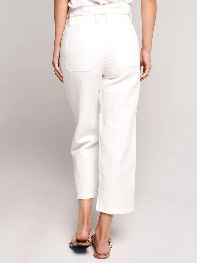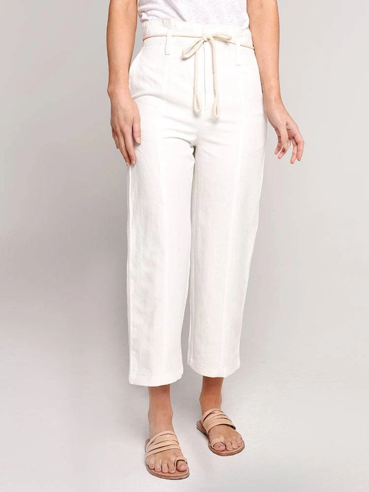 FEATURES:High rise Oversized bekt loops with detachable rope belt Front slant pockets Back patch pockets Front seam detail 25 1/4 inch inseam 52% linen, 48% cotton Dry clean Styled with Vince tee Style # V5049-83154 and By James sandals Style # JEANNE. Model is wearing size 4 pant and size small tee.