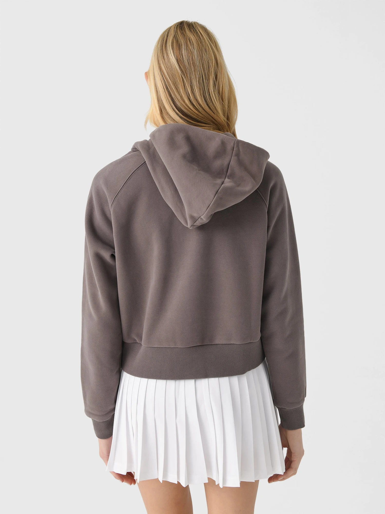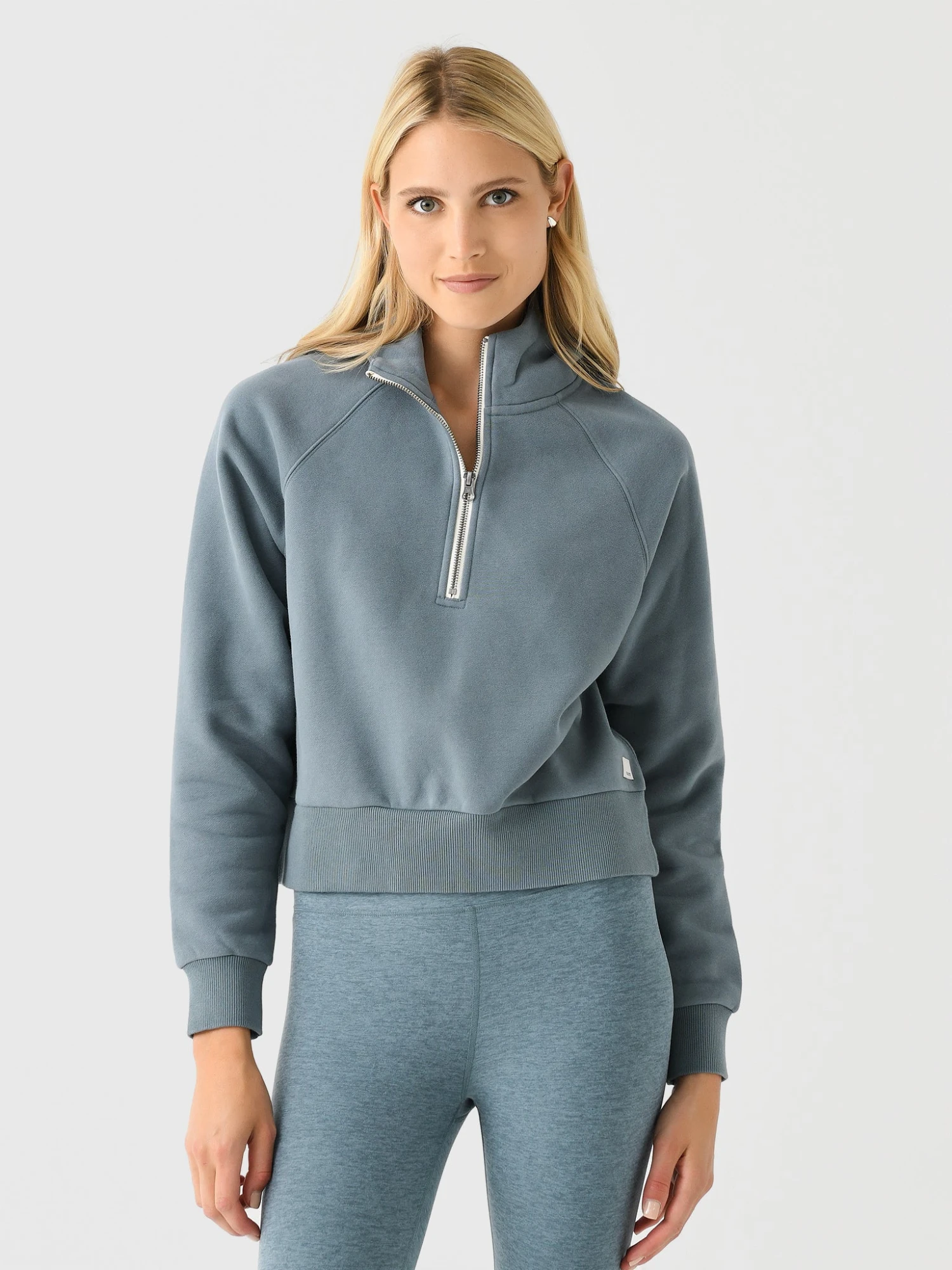 A half-zip pullover hoodie made from a soft organic cotton fleece blend.