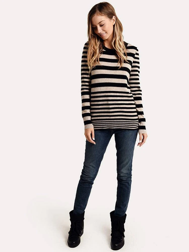 FEATURES:Striped printCashmere Knit BP3Pullover styleWaist-length styleCrew neckLong sleevesShell: 100% cashmereHand wash or dry cleanImported, ChinaStyled with Citizens Of Humanity Jeans Style # 1742-850. Model is wearing small sweater and 26 jean.