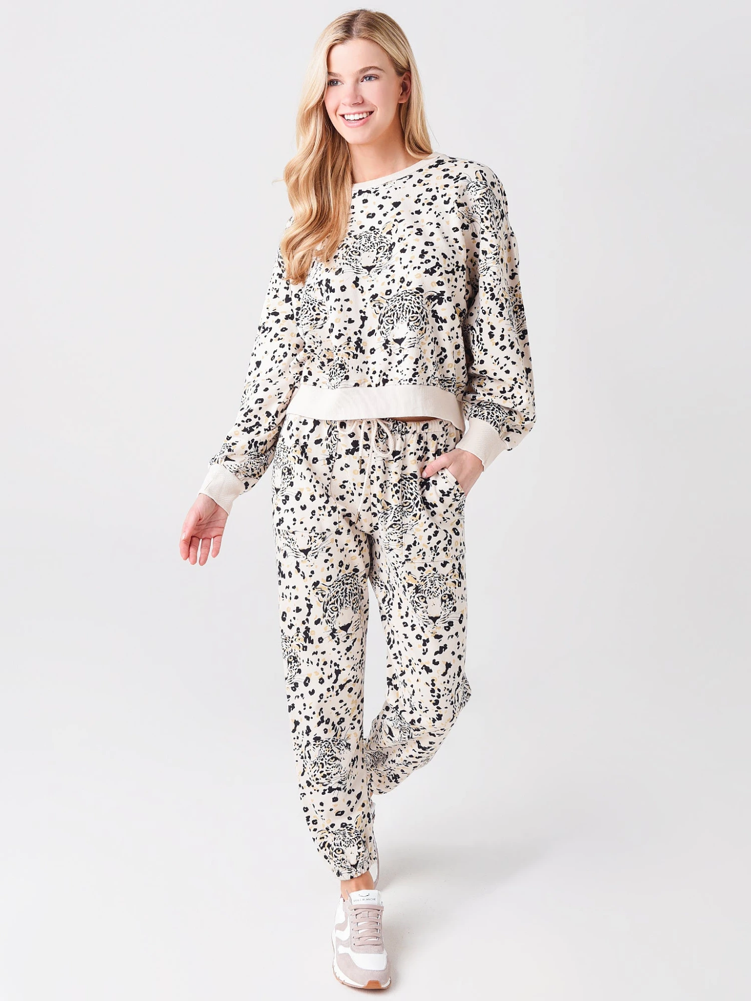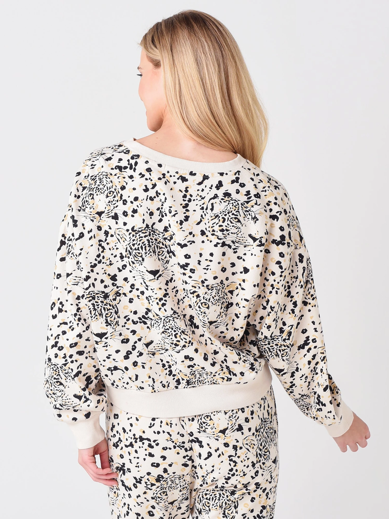 FEATURES:SweatshirtCrew NecklineDolman SleeveContrast Ribbed Neck, Cuffs and HemAll-Over Leopard and Leopard Face MotifSuper SoftRelaxed Fit100% CottonModel is wearing size Small sweatshirt.Model’s Measurements: Height: 5’9″; Bust: 32B; Waist: 24″; Hips: 36″; Dress: 4 (US)